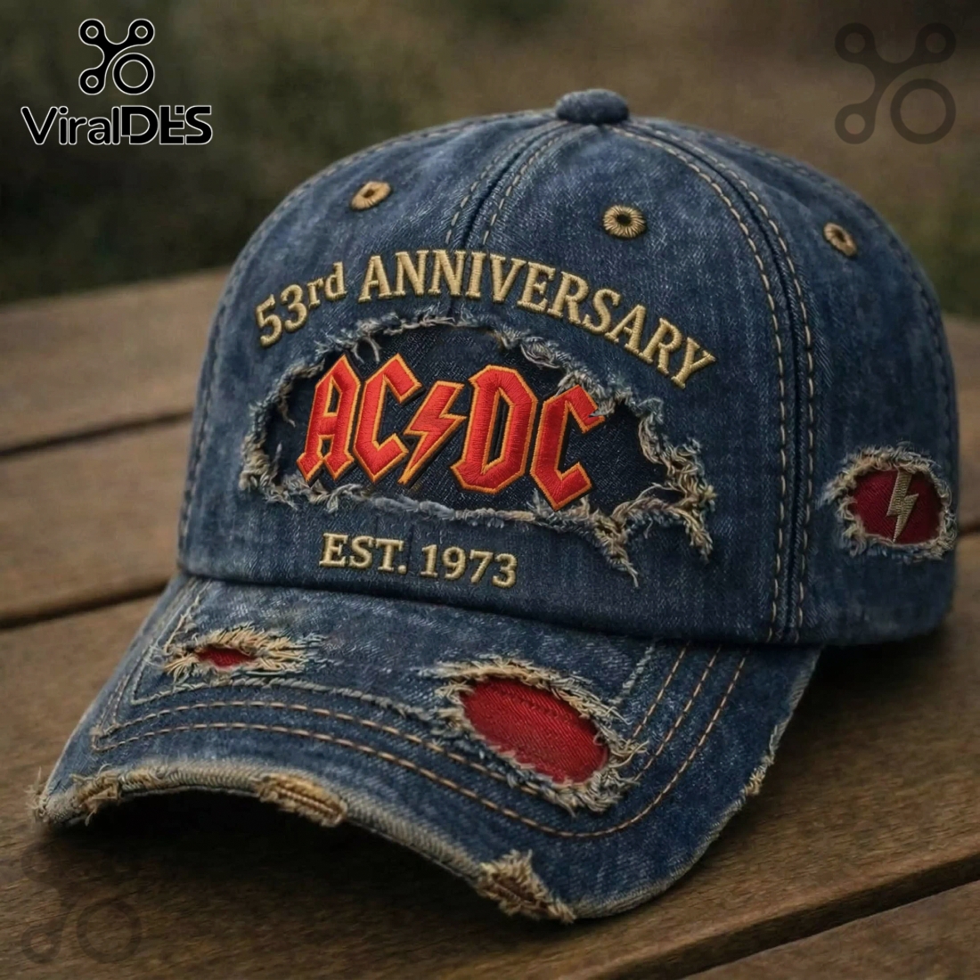 AC DC 53rd Anniversary Distressed Denim Baseball Cap