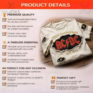 Slip on this AC/DC 53rd Anniversary tee and feel the energy. You’ll love the genuine smiles and excited questions from strangers asking, ‘Where did you get that awesome shirt?’ It’s more than just apparel; it’s an invitation to forge instant connections with your rock community, sharing stories and memories of legendary concerts.