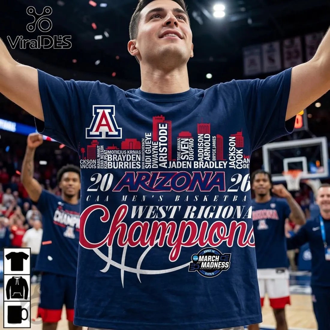 Arizona Wildcats 2026 West Regional Champions Roster T-Shirt