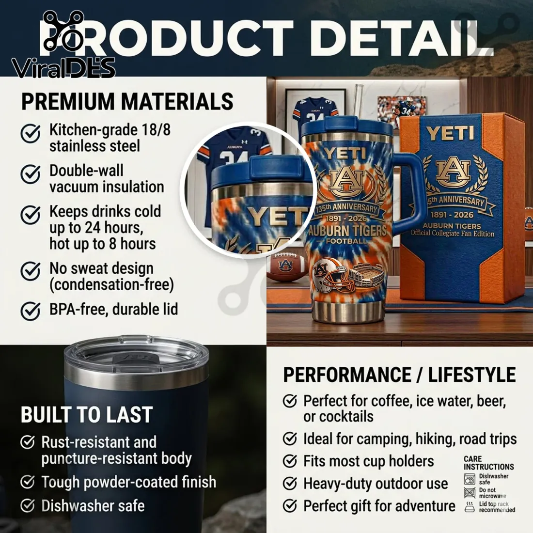 This Auburn Tigers 135th Anniversary Football Commemorative YETI Tumbler is for the faithful, the ones who stand firm through every season. War Eagle, forever.