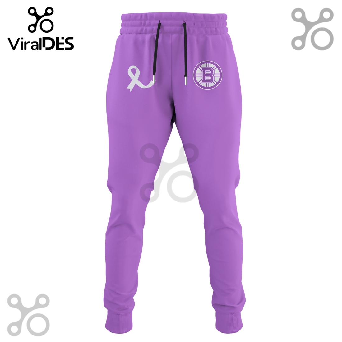 Boston Bruins Hockey Fights Cancer Purple Ribbon Hoodie