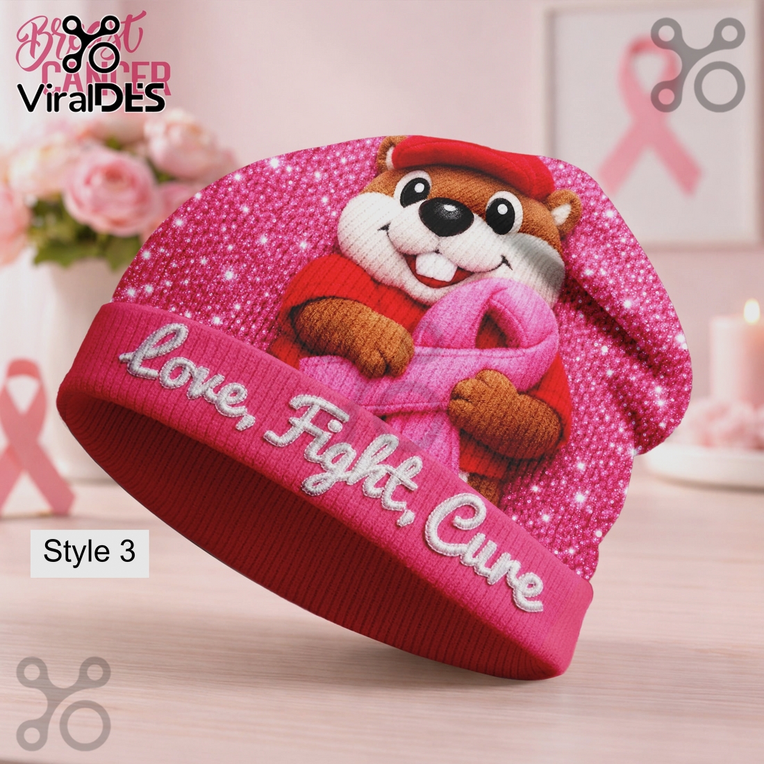 Bold Pink Dog Beanie: Fight Cancer, Make Impact