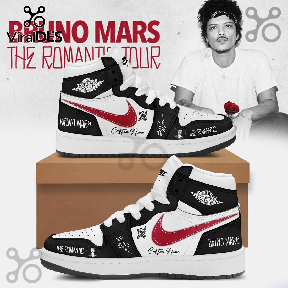- True Colors: There’s no hiding your dedication when you lace up. This gear proudly broadcasts your unwavering support for Bruno Mars and The Romantic Tour, letting the world know exactly where you stand.