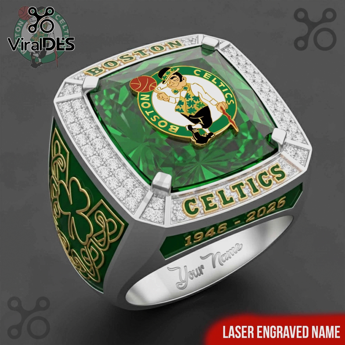 Celtics 1946-2026 Anniversary Ring Custom Engraved Name Premium Ring