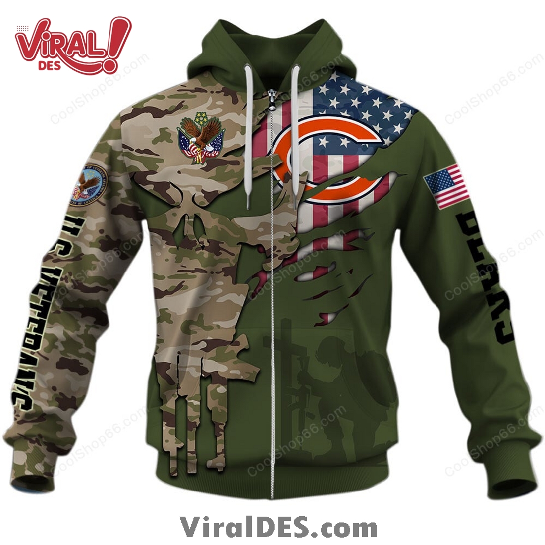 The Chicago Bears NFL Veteran’s Day Design Hoodie for 2025 represents a profound fusion of unwavering team loyalty and deep national respect, meticulously engineered for the discerning fan who values both comfort and a meaningful message. This isn’t just another piece of fan apparel; it’s a wearable testament to patriotism and gridiron passion, designed with an eye toward superior craftsmanship and enduring style. Its core material is a premium, heavy-gauge cotton-polyester fleece blend, carefully selected to offer an exceptional balance of warmth, breathability, and durability. The interior is sumptuously brushed, providing a soft, plush feel against the skin, ensuring maximum comfort whether you’re braving the chill of a game day at Soldier Field, relaxing at home, or out honoring veterans in your community.