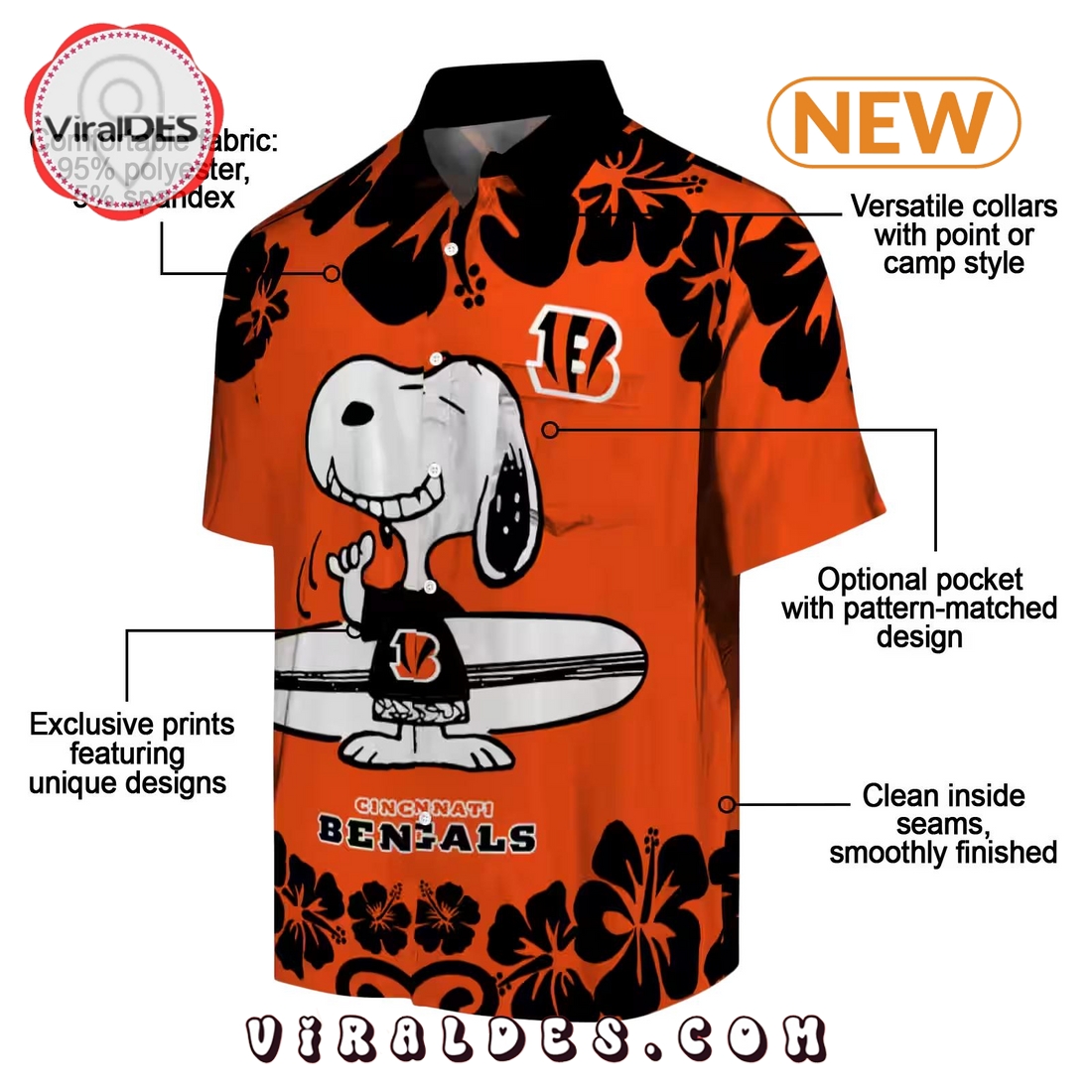 Cincinnati Bengals Snoopy Surf Hawaiian Shirt Information: