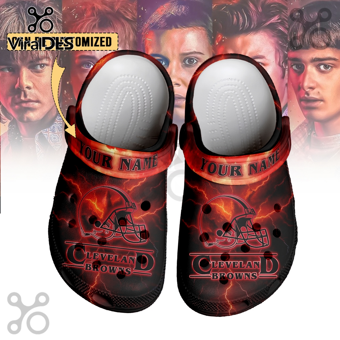 The Cleveland Browns x Stranger Things Crocs Crocband Clogs represent a remarkably unique confluence of two beloved pop culture phenomena, meticulously engineered to satisfy fans who crave both unparalleled comfort and distinct personal expression. This particular footwear collaboration stands out immediately with its striking visual identity, seamlessly blending the iconic team colors and emblems of the Cleveland Browns with the mysterious, captivating aesthetics of Netflixβs Stranger Things. Users will find the durable Crosliteβ’ foam foundation adorned with a rich palette that likely incorporates the Brownsβ signature orange and brown, potentially interwoven with darker, atmospheric tones reminiscent of the Upside Down or the vibrant neon glow from the seriesβ 80s setting. Imagine game-day ready graphics like the recognizable “Browns” wordmark or a subtle helmet logo, juxtaposed with evocative Stranger Things motifsβperhaps a subtle Demogorgon silhouette, the eerie flickering Christmas lights, a nod to the Hellfire Club, or even a texture mimicking the Upside Downβs tendrils. The classic Crocband style, defined by the contrasting band around the midsole, becomes a canvas for further intricate detailing, ensuring that this isn’t just a generic branded shoe, but a thoughtful narrative piece for your feet.