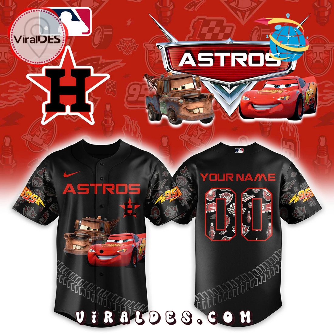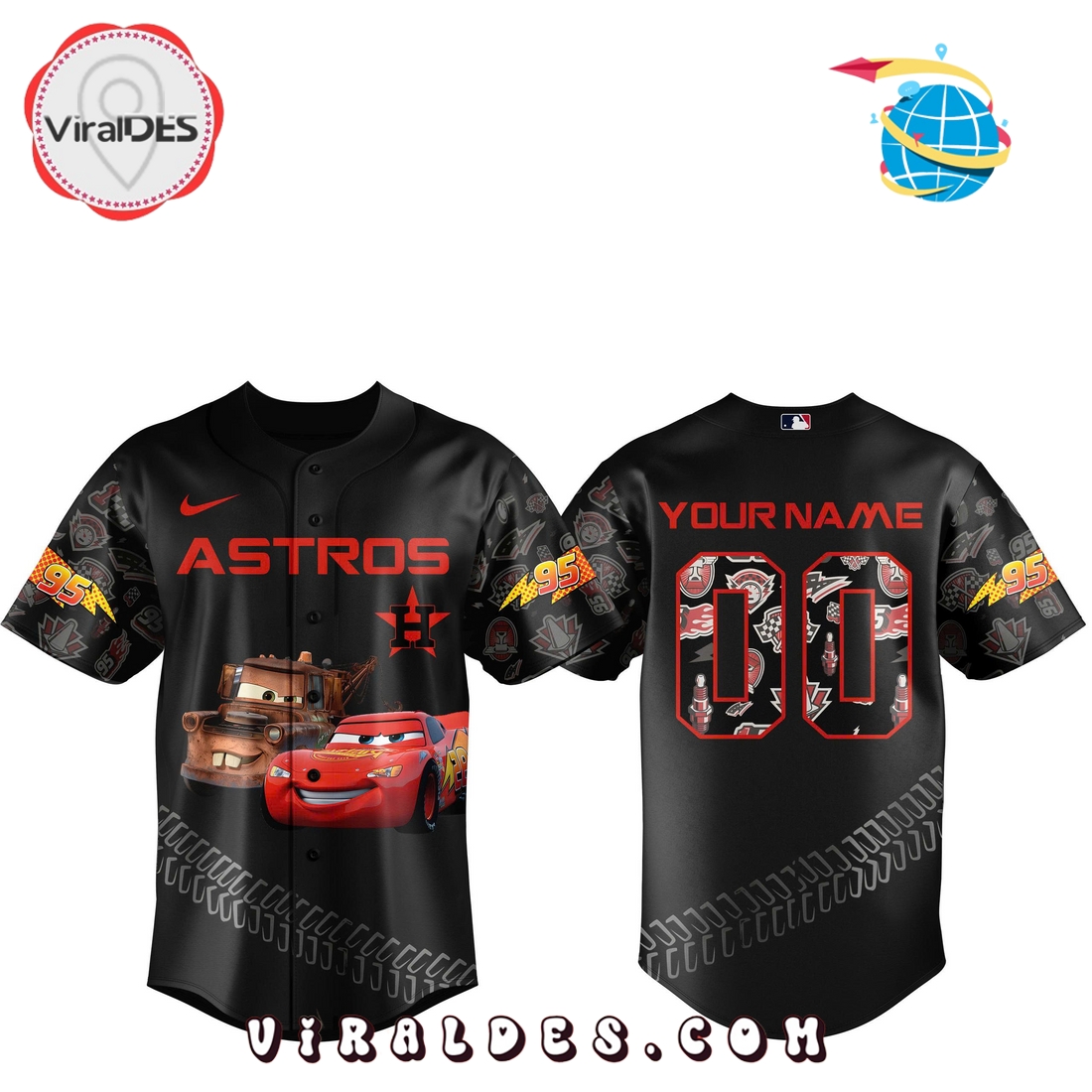 Custom Houston Astros x Lightning McQueen Baseball Jersey Information: