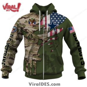 The Dallas Cowboys NFL Veteran’s Day Design Hoodie 2025 presents a powerful fusion of unwavering team loyalty and profound national gratitude, meticulously engineered to provide both supreme comfort and a compelling visual statement. This distinctive garment stands as a testament to American pride and sports passion, specifically designed for the dedicated fan who wishes to honor military service while simultaneously showcasing their allegiance to the legendary Dallas Cowboys. Its design centers around a thoughtful blend of iconic team imagery and respectful patriotic motifs. Consumers will find the traditional Cowboys star logo prominently featured, often rendered in a subtly distressed or textured finish that evokes a sense of enduring strength and history. Intertwined with this classic emblem are elements thoughtfully integrated to commemorate Veteran’s Day 2025: perhaps a subdued American flag motif expertly woven into a sleeve or hood lining, or a stylized “THANK YOU VETERANS” text, possibly in a military-inspired stencil font, placed judiciously on the back or chest. The color palette typically extends beyond the standard Cowboys blue and silver, incorporating muted tones of olive green, khaki, or even a deep, respectful crimson, harmonizing with the patriotic theme without overpowering the team’s identity. This careful balance ensures the hoodie is both a spirited fan item and a dignified tribute.