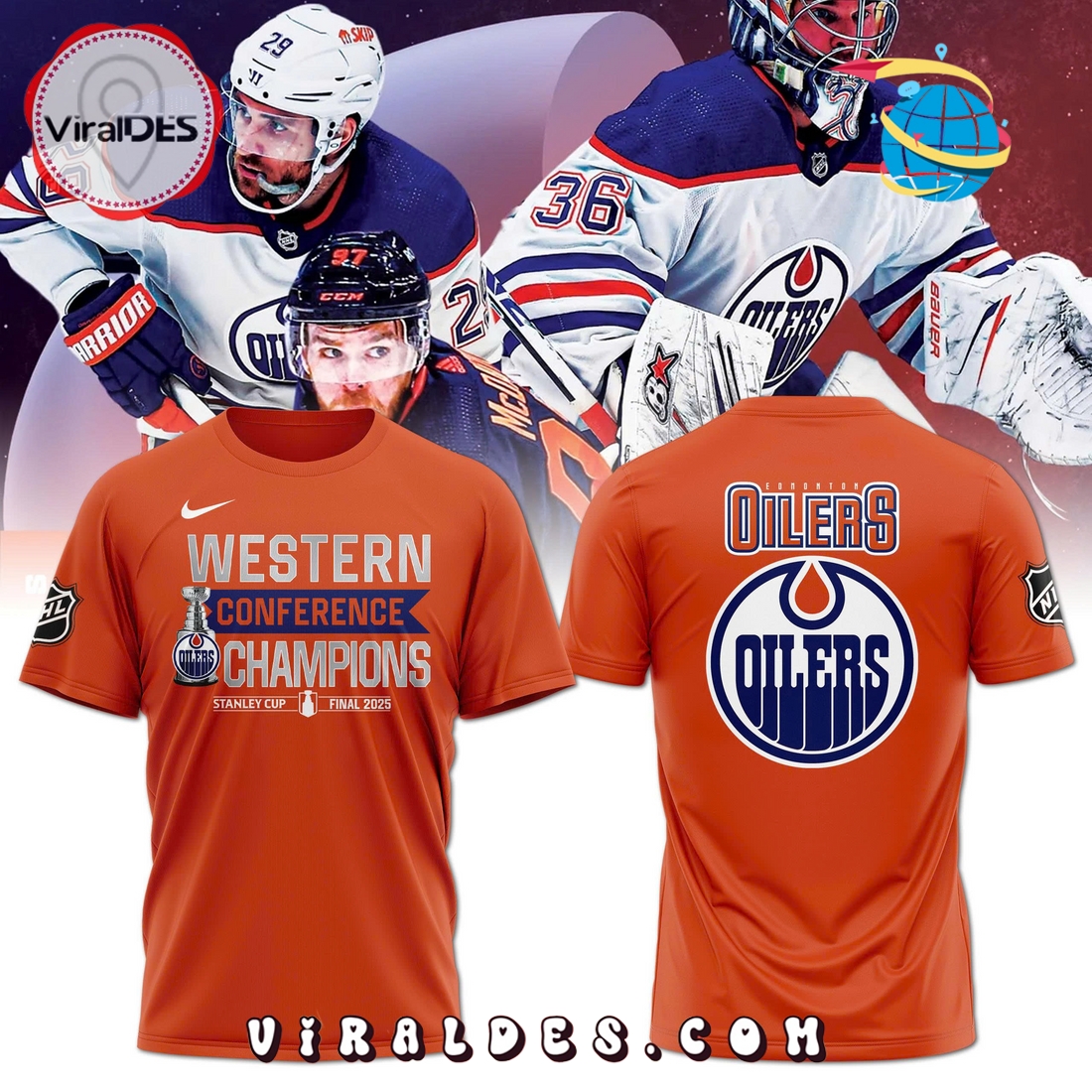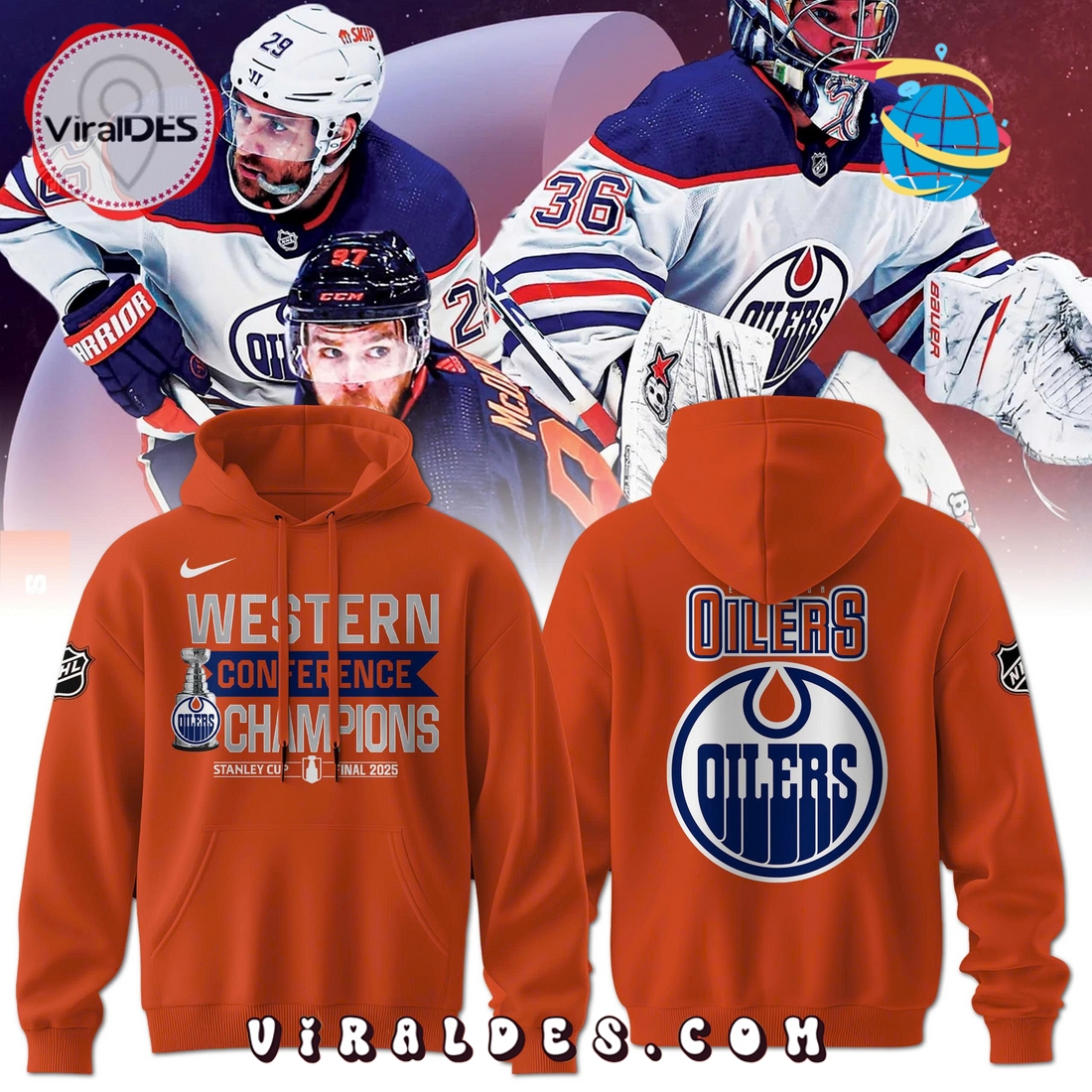 Edmonton Oilers 2025 Western Conference Champions Orange Hoodie