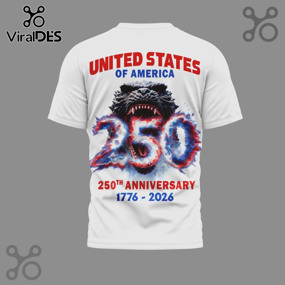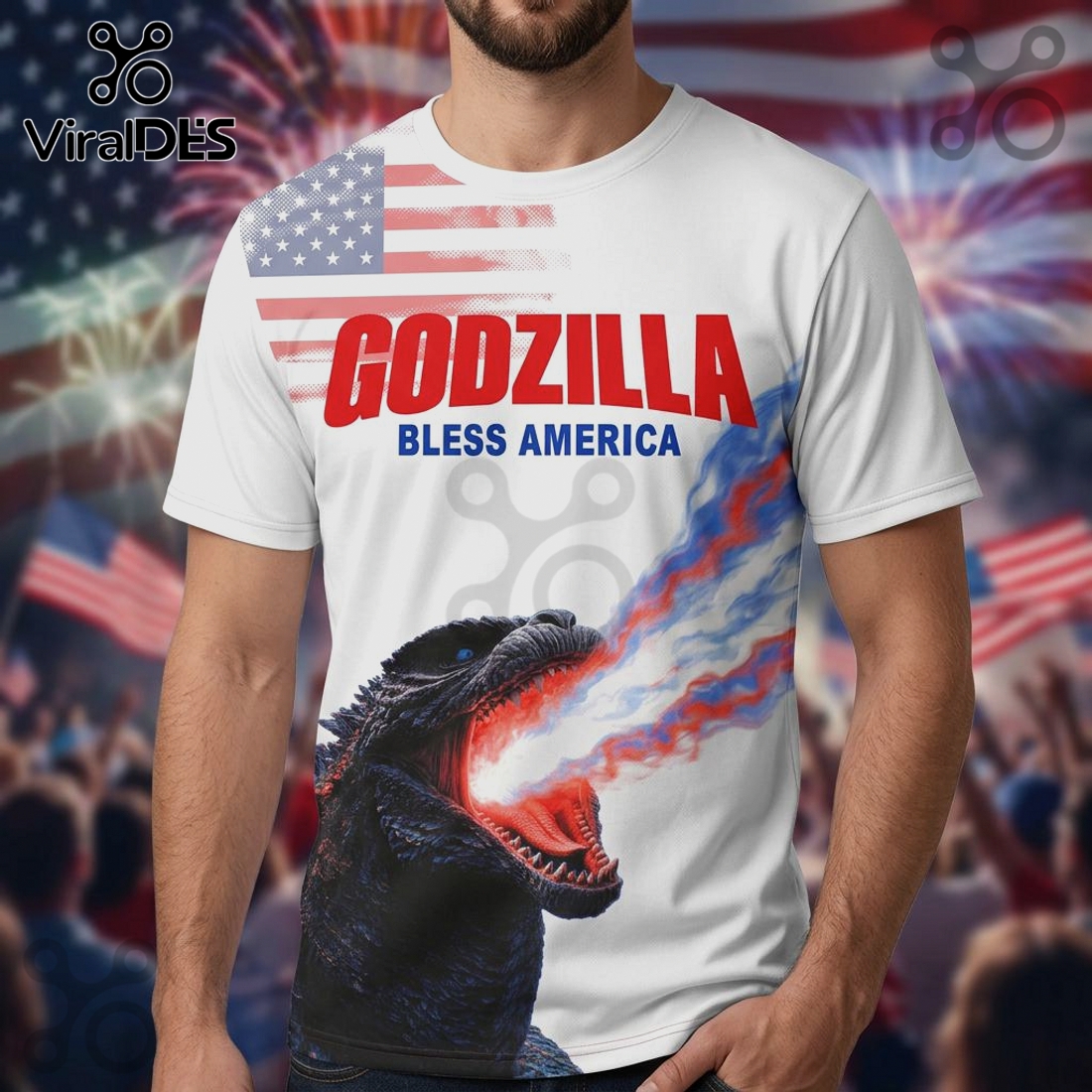 Godzilla Bless America 250th Anniversary Patriotic Graphic T-Shirt