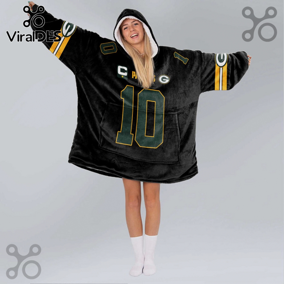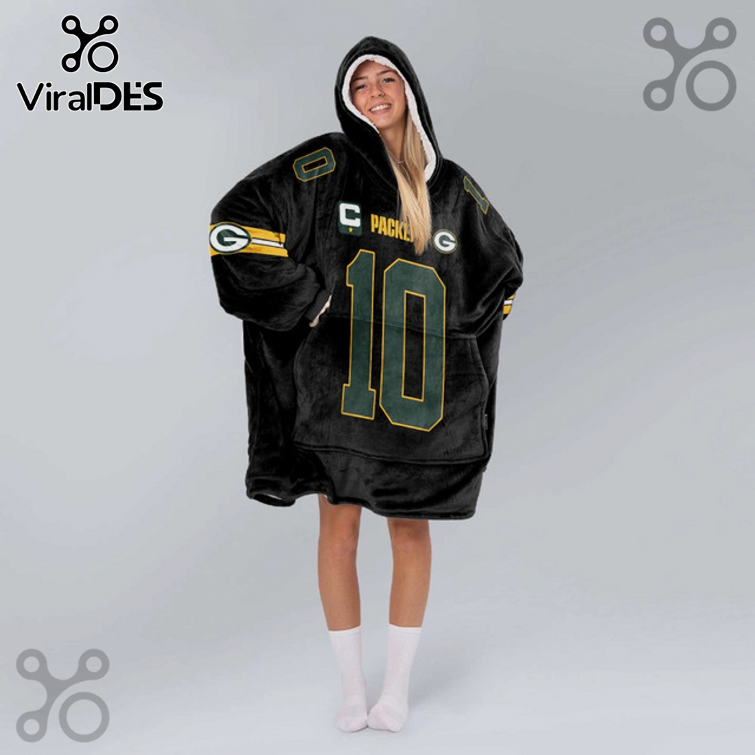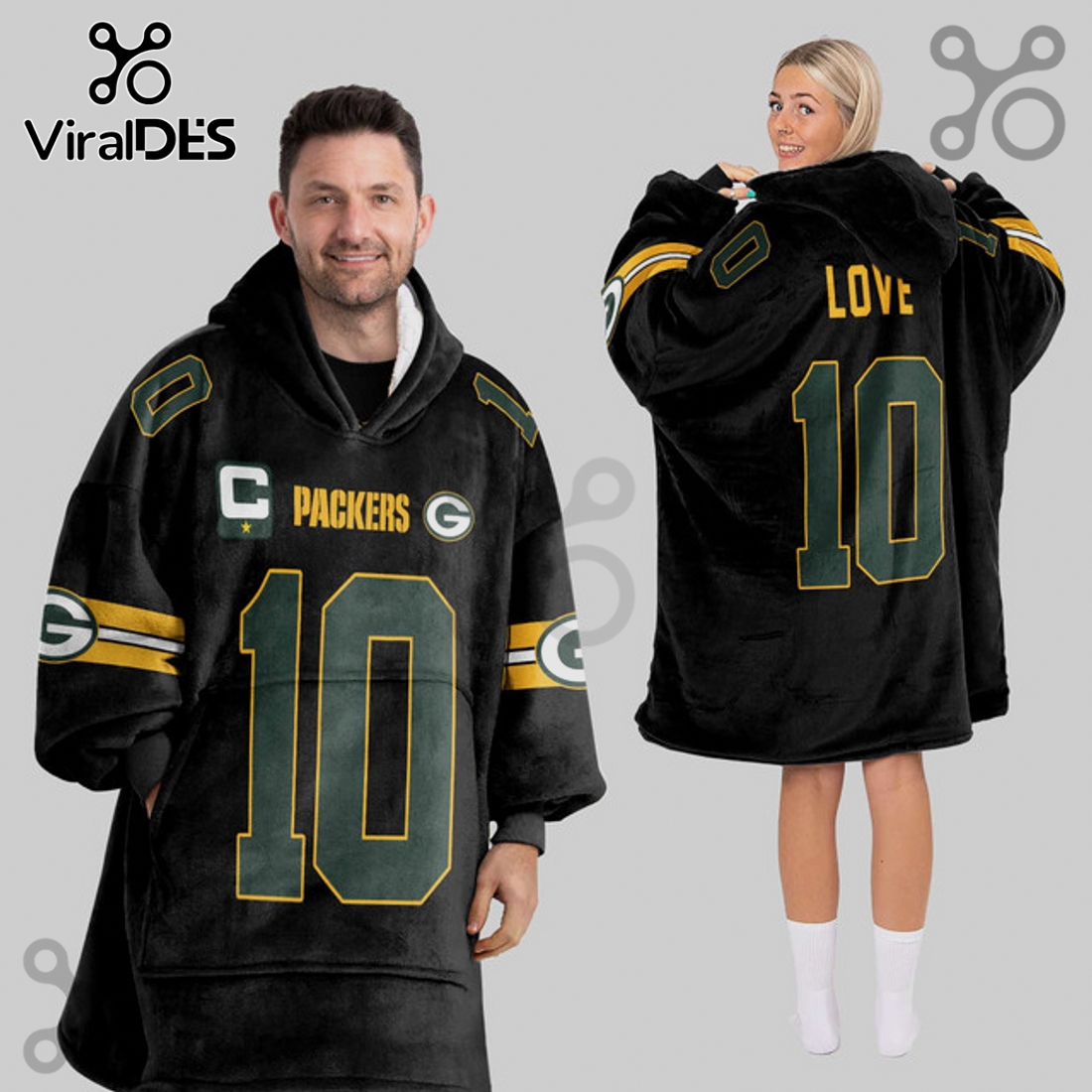 Visually, the blanket hoodie is a striking tribute to Jordan Love and the Packers. It prominently features Love’s number ’10’ and his name across the back, rendered in the iconic Packers font and color scheme of deep green and bold gold. The front of the garment proudly displays the classic Green Bay ‘G’ logo, often complemented by an official NFL shield for authenticity, while the significant “Captain” designation is boldly integrated, symbolizing Love’s leadership role and a point of pride for fans. Every graphic element is meticulously applied, ensuring crisp lines and long-lasting vibrancy, resisting fading or cracking even after numerous washes. The design is comprehensive, making sure your allegiance is clear from every angle, whether you’re relaxing on the couch or moving about the house.