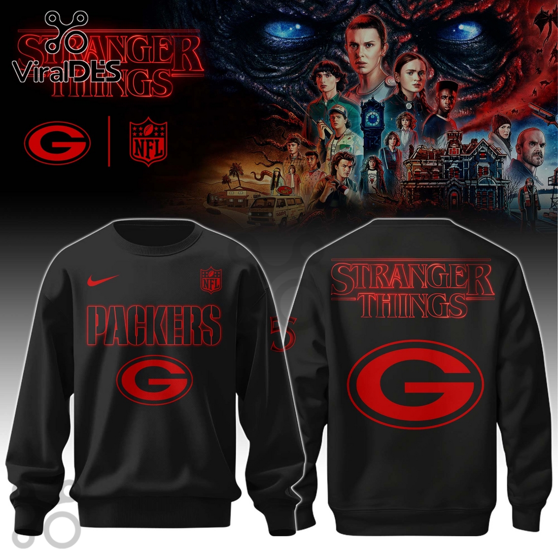 The design itself is a masterclass in collaboration, thoughtfully integrating the unmistakable Green Bay Packers iconography with the eerie, captivating aesthetic of – Stranger Things- . Users will find the classic Packers “G” logo reimagined with subtle, unsettling textures reminiscent of the Upside Down, or perhaps shadowed by the silhouette of a Demogorgon, creating an intriguing blend of loyalty and lore. The team’s name might be rendered in the instantly recognizable – Stranger Things- typography, possibly featuring a distressed or glowing effect that evokes the show’s signature atmosphere. Larger graphic elements on the back could depict a scene where Lambeau Field stands under a foreboding, crimson-hued sky, a portal hinting at another dimension opening near the goalposts, or classic – Stranger Things- characters interacting with Packers elements. This isn’t merely two logos side-by-side; it’s a cohesive, narrative-driven visual that celebrates both worlds with respect and creativity, turning the hoodie into a wearable piece of art.