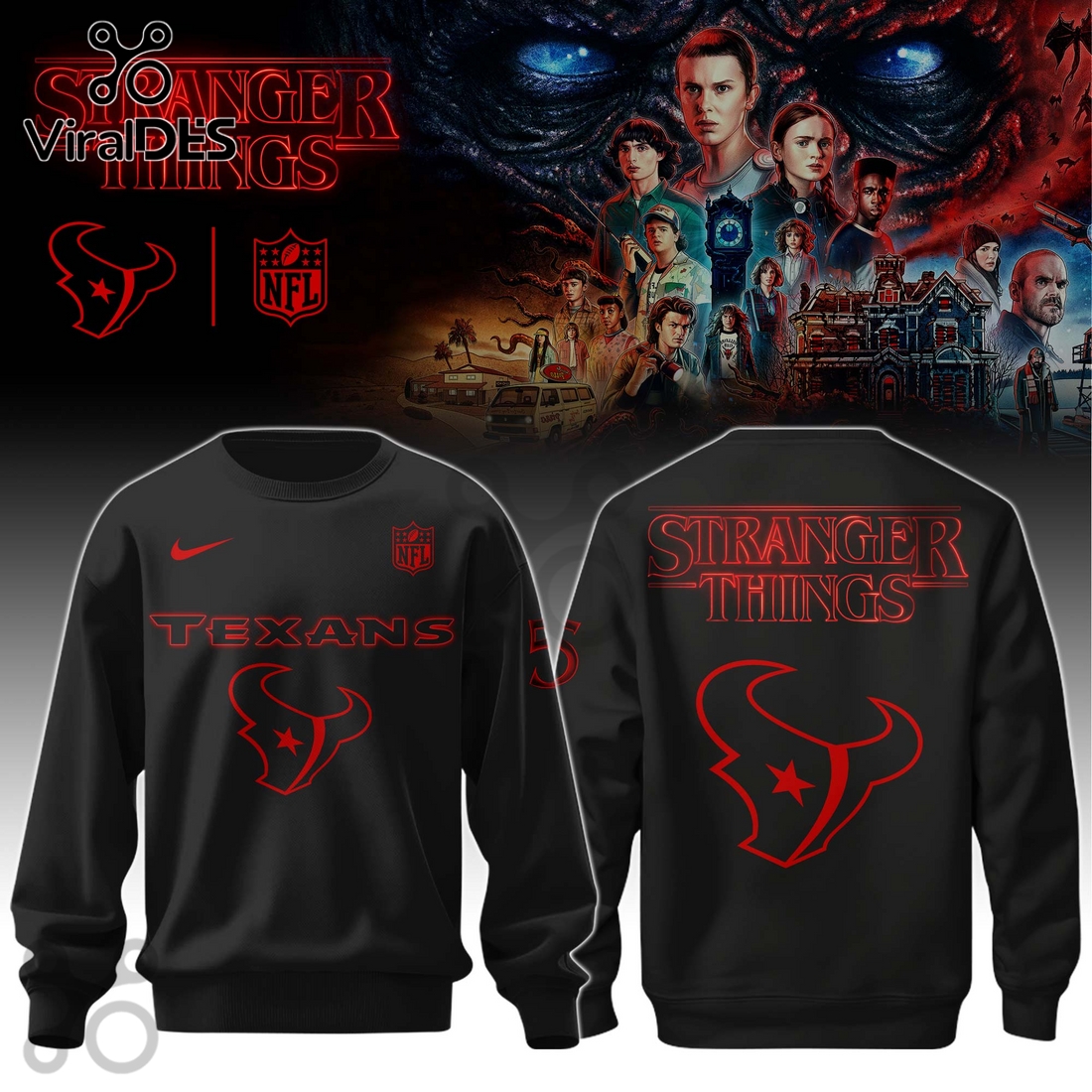 The Houston Texans NFL Stranger Things Limited Edition Hoodie stands as a truly distinctive garment, designed to captivate the most dedicated fans of both the gridiron and the chilling world of Hawkins, Indiana. This exceptional piece meticulously blends the iconic imagery and color palette of the Houston Texans with the nostalgic, eerie aesthetic of the Stranger Things universe, creating a wearable collectible unlike any other. Imagine the Texansβ familiar deep steel blue and battle red intertwined with the ominous, retro glow often seen in the Upside Down, perhaps with the teamβs bull logo subtly shifting to reveal a Demogorgon-esque outline or featuring an 80s-inspired, pixelated rendition. Graphic elements might include distorted gridiron lines that mimic the visual static from the show, or subtle nods like string lights forming the Texans star, alongside typography that evokes the classic Stranger Things title sequence. The “Limited Edition” designation isn’t just a label; itβs a promise of exclusivity, often meaning fewer units are produced, potentially featuring unique numbering or specific design elements that will never be replicated, making each hoodie a future collector’s item and a significant investment for true enthusiasts.