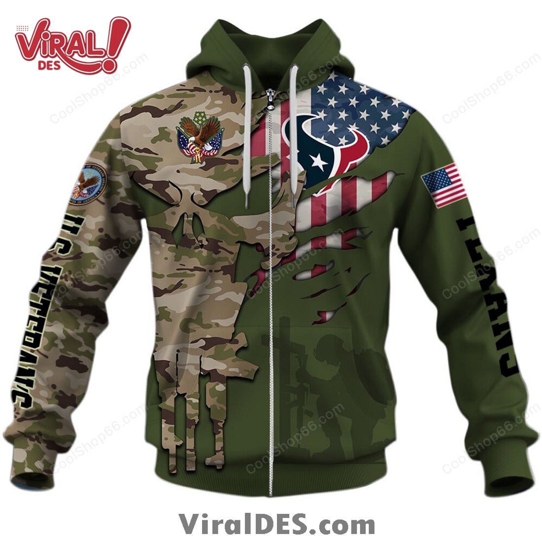 The advantages of owning this particular hoodie extend far beyond its material quality and aesthetic design. For the devoted Houston Texans fan, it serves as an unequivocal declaration of loyalty, allowing them to represent their team with distinction, whether cheering from the stands, gathering with friends, or simply running errands. For veterans and military families, it offers a tangible way to connect with their beloved team while simultaneously honoring their service or the service of loved ones, feeling a sense of recognition and pride. The carefully considered design avoids overt political statements, instead focusing on universal themes of respect, sacrifice, and appreciation for those who have served. Its versatility makes it a practical addition to any wardrobe, suitable for a wide array of casual settings β from tailgates and barbecues to weekend excursions or a quiet evening at home. The “2025” designation also imbues it with a sense of future value, positioning it as a distinct collectible item that marks a specific year’s tribute, distinguishing it from general team merchandise. Potential customers are seeking not just comfort and style, but also meaning and connection, and this hoodie delivers on all fronts, providing a durable, visually appealing, and emotionally resonant garment that celebrates both gridiron passion and national reverence.