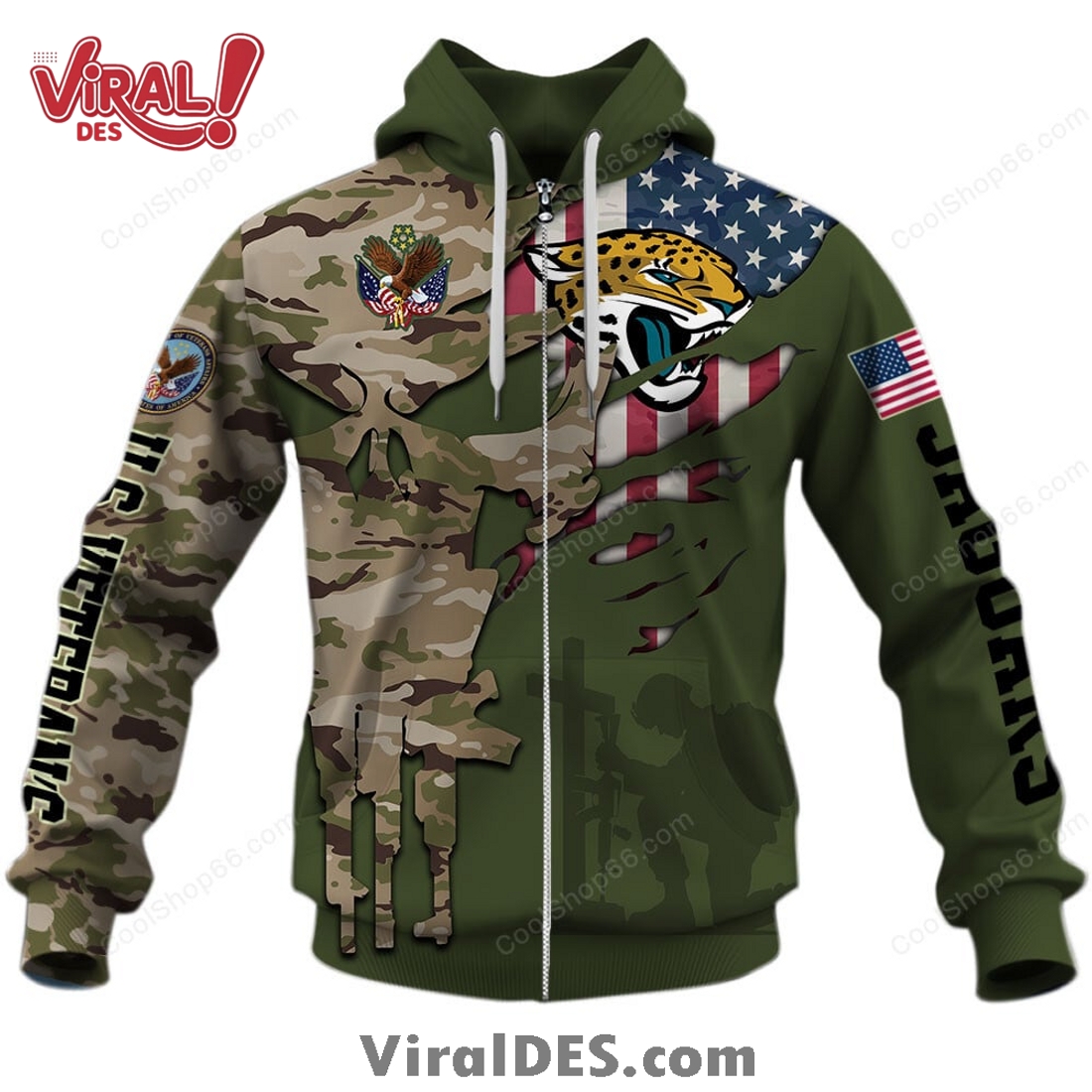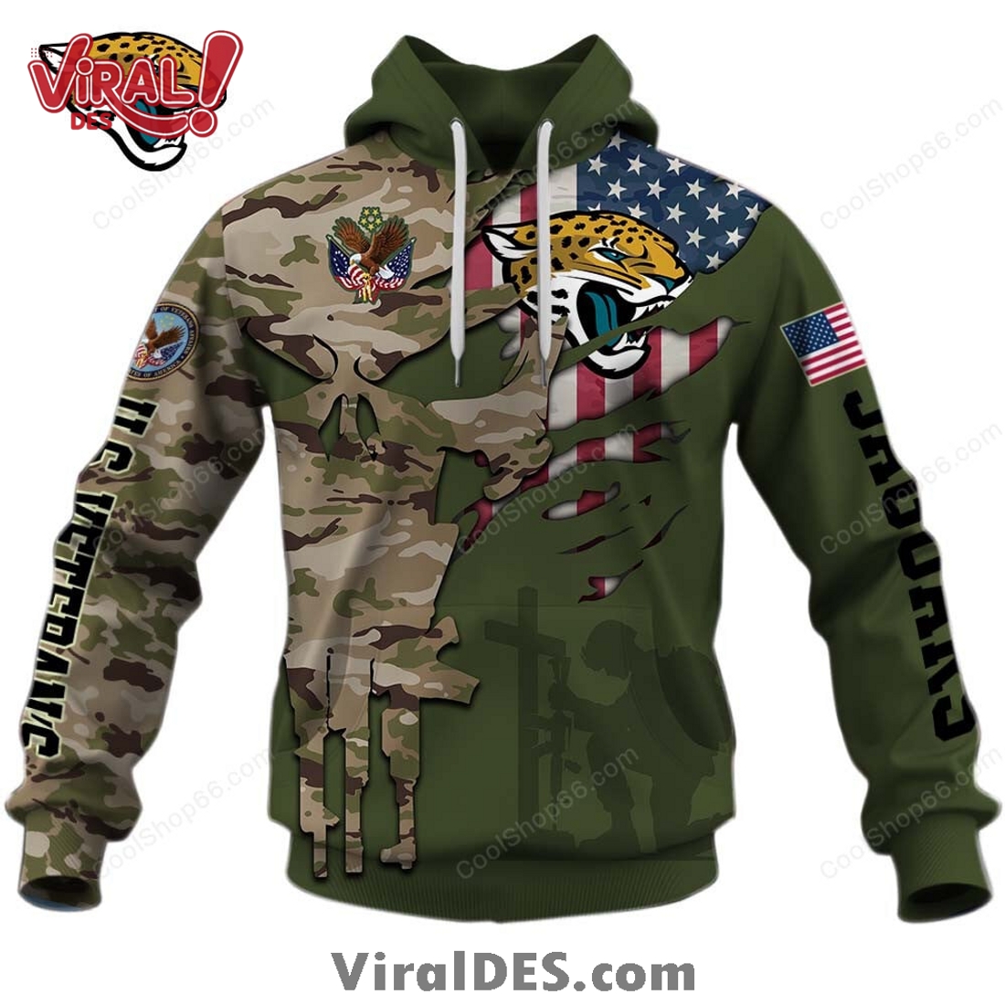 This hoodie is specifically engineered to meet the needs of a diverse range of customers. For the ardent Jacksonville Jaguars fan, it’s an undeniable expression of team allegiance, allowing them to showcase their support with pride and comfort. For individuals with a deep respect for military service, it offers a tangible way to honor veterans and contribute to the national sentiment of gratitude, making a personal statement that transcends mere fandom. Moreover, its superior comfort and durable construction cater to those who prioritize quality and longevity in their apparel, providing a reliable garment for everyday wear or special occasions. As a gift, it’s an incredibly thoughtful choice for any Jaguars enthusiast, particularly one with a connection to the armed forces, offering a meaningful present that combines passion, comfort, and a profound message of appreciation. The Jacksonville Jaguars NFL Veteran’s Day Design Hoodie 2025 stands out not just as an article of clothing, but as a wearable emblem of dual loyalties, offering unparalleled comfort, lasting quality, and a deeply resonant design for years to come.
