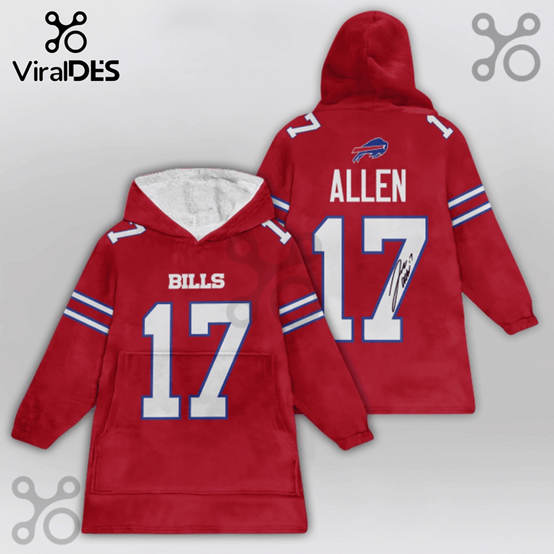 Josh Allen 17 Buffalo Bills NFL Autographed Oversized Blanket Hoodie