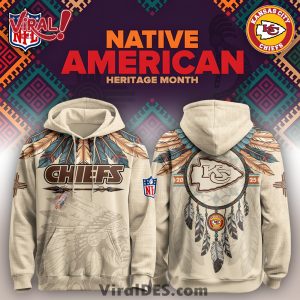 The Kansas City Chiefs Native American Heritage Month Limited Editions Hoodie stands as a unique and thoughtfully designed garment, offering a distinctive way for fans to express their allegiance while acknowledging a profound cultural observance. This exceptional piece is far more than just team apparel; it serves as a wearable statement, meticulously blending iconic Chiefs symbolism with respectful, inspired elements of Native American artistry. The design prominently features the unmistakable Kansas City Chiefs arrowhead logo, but instead of its usual stark presentation, it is artfully integrated within a rich tapestry of patterns and motifs that echo traditional Native American art forms. Imagine intricate geometric designs, flowing lines, or perhaps stylized feather elements subtly framing or complementing the team’s emblem, all rendered in a palette that harmonizes the vibrant Chiefs red and gold with deeper, earthy tones, or natural hues often found in traditional indigenous art. This fusion creates an aesthetic that is both immediately recognizable as Chiefs merchandise and deeply resonant with the spirit of Native American heritage.