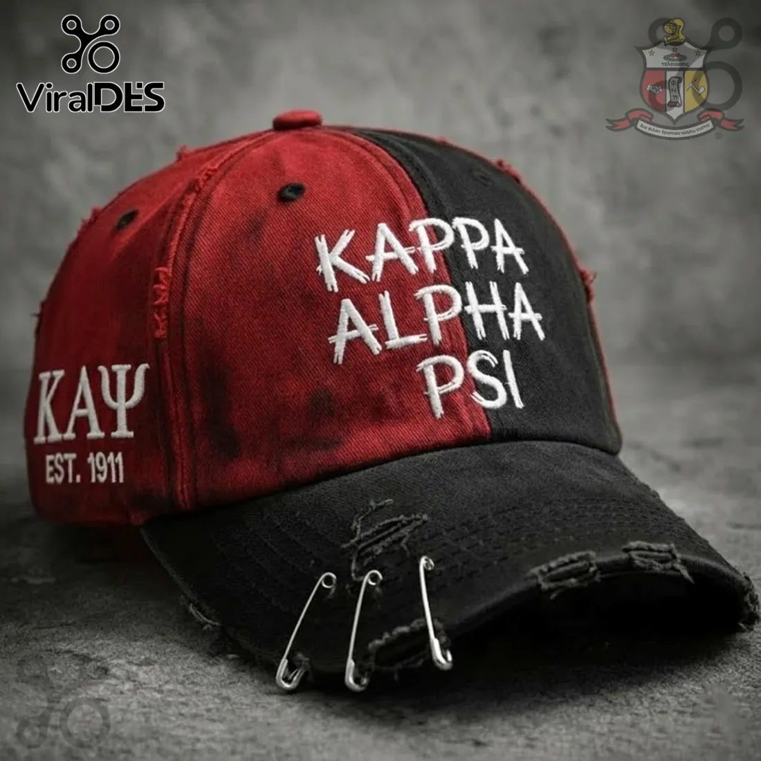 - Includes: 1 x Kappa Alpha Psi Fraternity Red & Black Distressed Baseball Cap