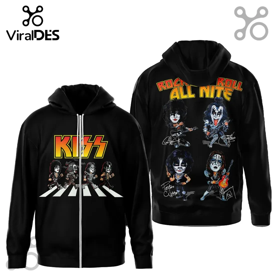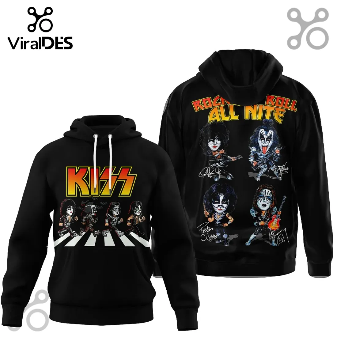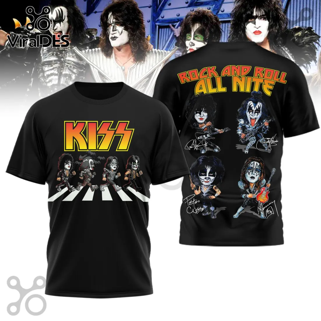 This KISS Rock Band Rock and Roll All Nite Chibi Graphic Black T-Shirt is for the die-hards, the loyalists who stand by the legends, never switching sides, through every anthem and every stage.