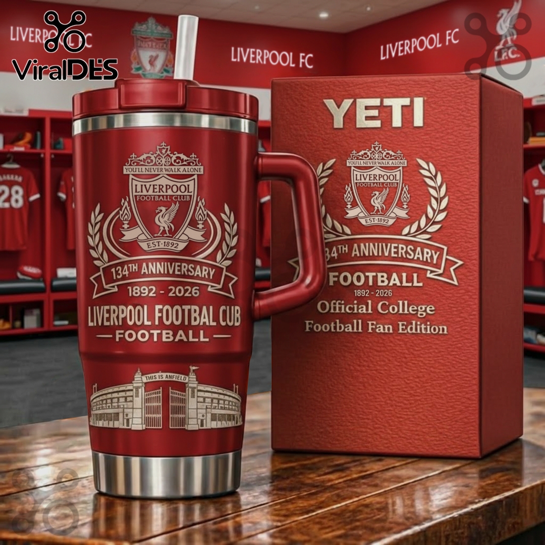Liverpool FC 134th Anniversary Football Fan Edition College Tumbler