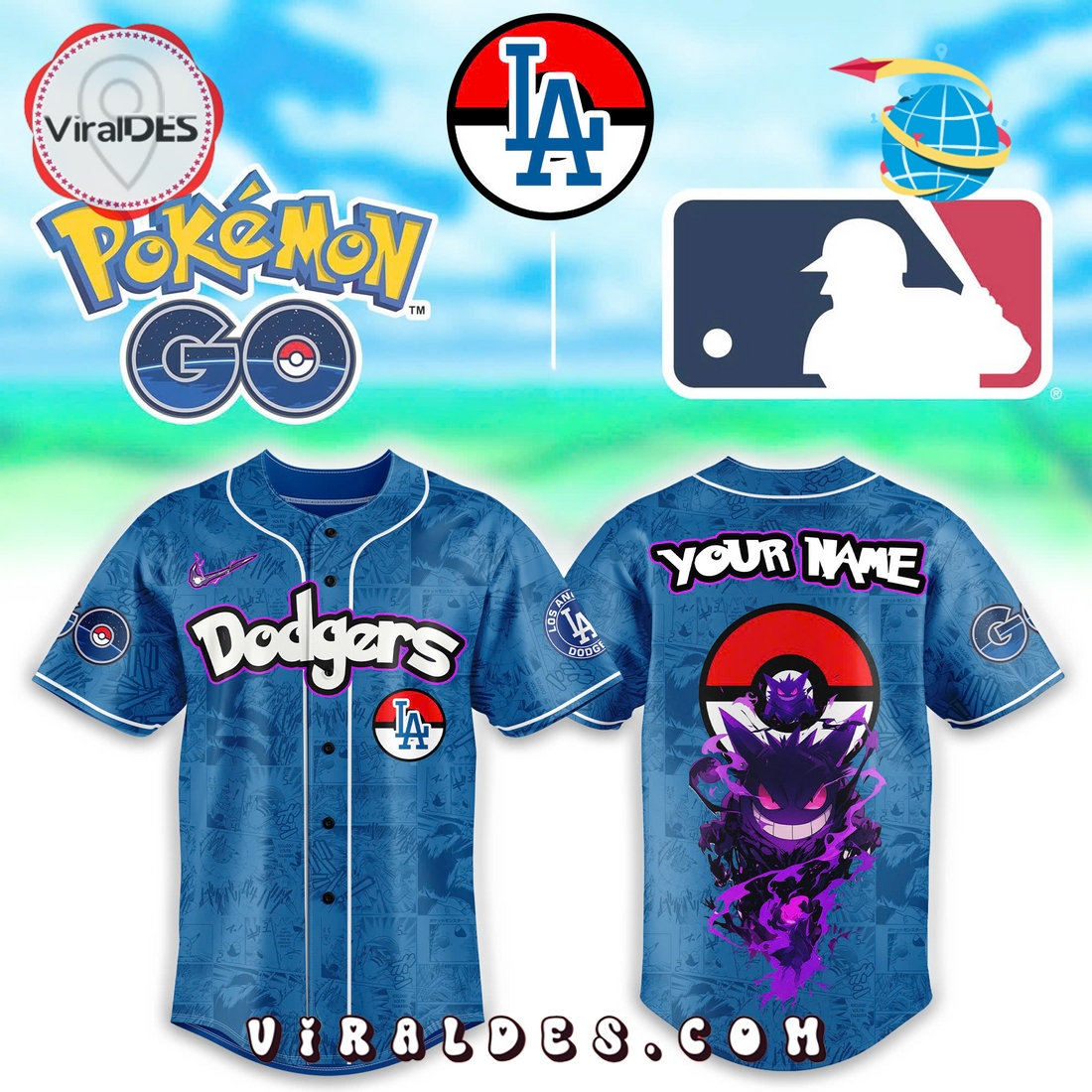 Los Angeles Dodgers x Pokemon Go Gengar Baseball Jersey Information: