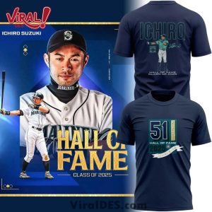This Mariners Ichiro Suzuki 2025 HOF Navy Shirt stands as a quintessential piece of fan apparel, meticulously designed to honor a living legend at the zenith of his post-playing career. It serves as a tangible expression of allegiance for devoted Seattle Mariners supporters and an homage to Ichiro Suzukiβs unparalleled legacy as he approaches his highly anticipated induction into the National Baseball Hall of Fame in 2025. The shirtβs foundational navy hue provides a classic, understated backdrop, allowing the carefully integrated design elements to truly pop. Dominating the front, fans will find a striking graphic that masterfully combines the iconic Mariners branding with Ichiro’s distinguished name and his instantly recognizable number 51. This isn’t merely a casual player tee; the “2025 HOF” designation is centrally featured, often in a bold, celebratory font or an emblematic shield, underscoring its commemorative status and making it an instant collectible. This specific detail is crucial for buyers who understand the significance of this future milestone, securing a piece of history before it officially unfolds.