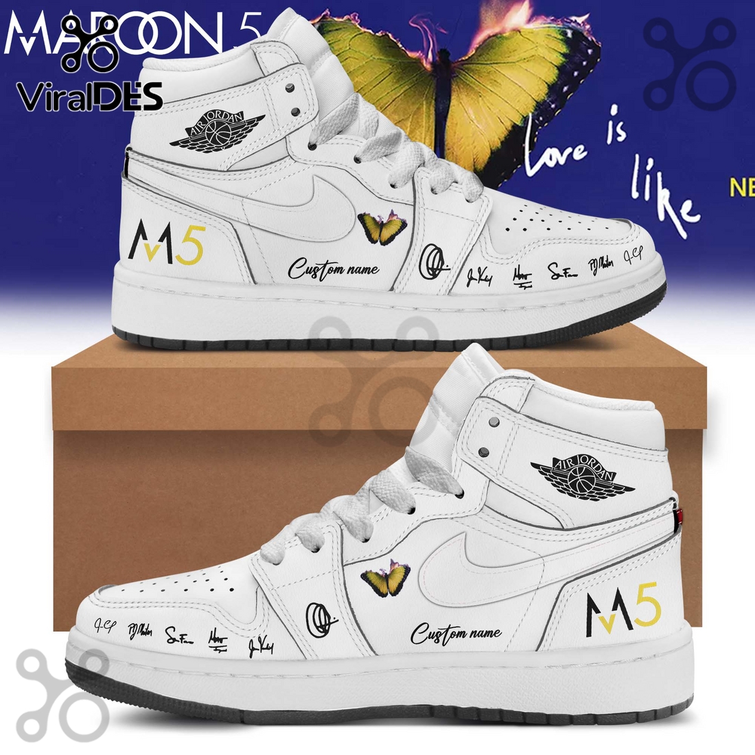 Maroon 5 Love Is Like Tour White Air Jordan 1 Sneakers