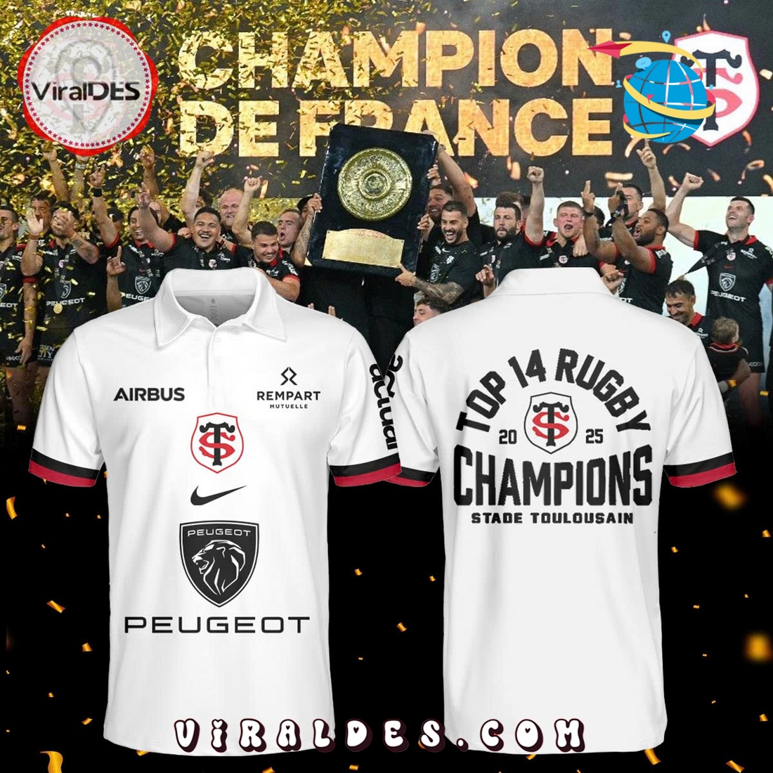 Men’s Stade Toulousain 2025 Champions White Polo Shirt Information: