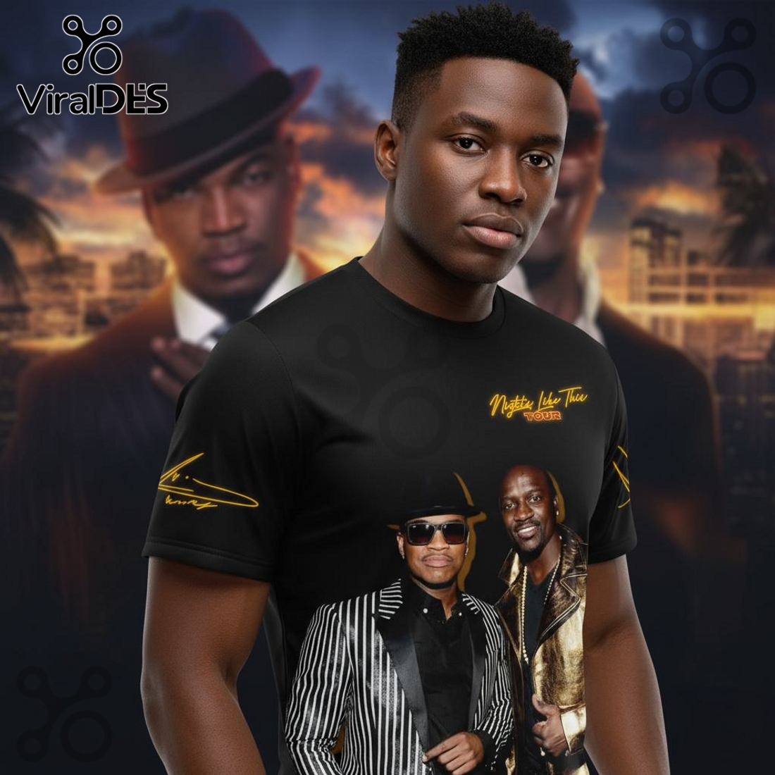 The artistic composition of the shirt is a testament to the electrifying energy of the “Nights Like This 2026 Tour.” Expect to see iconic representations of both NE-YO and AKON, perhaps their stylized likenesses captured in mid-performance, or powerful graphic elements symbolizing their distinct musical styles coalescing. The tour name, “Nights Like This 2026 Tour,” will be prominently integrated into the design, likely rendered with a futuristic or high-energy font that complements the overall aesthetic. Surrounding these central figures and text, the design elements will evoke the thrill of a live show: dazzling light arrays, intricate soundwave patterns, silhouettes of an ecstatic audience, or perhaps urban skylines that suggest the tour’s global reach. The color palette is another crucial feature, meticulously chosen to reflect the mood and spectacle of a concert night. Rich, deep blacks and blues might form the background, allowing brilliant neons, metallics, and pulsating gradients to illuminate the foreground elements, making the 3D effect even more pronounced and the entire shirt radiate a palpable sense of excitement.