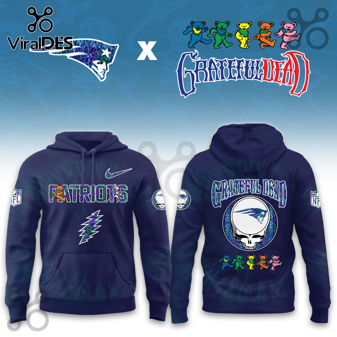 This New England Patriots Grateful Dead Limited Hoodie, slated for release in 2025, represents an unparalleled fusion of two iconic cultural forces, offering a garment that transcends mere fandom to become a statement of identity and a valuable collectorβs item. Engineered for the discerning fan who appreciates both the gridiron intensity of Foxborough and the transcendental grooves of the Dead, this hoodie masterfully weaves together the distinctive aesthetics and philosophies of both worlds. The primary design anchors around a truly innovative graphic treatment where the New England Patriotsβ classic Flying Elvis logo undergoes a psychedelic metamorphosis, subtly incorporating elements like a lightning bolt through the skull, reminiscent of the Grateful Deadβs iconic “Steal Your Face,” or perhaps transforming the helmet’s wing into a swirling, tie-dye-esque vortex. This is not a simple patch-over; instead, expect a sophisticated integration, where dancing bears might be seen wearing miniature Patriots helmets, or the bandβs signature roses and skulls motifs are subtly embedded within the teamβs traditional navy, red, and silver color scheme, creating a visual narrative that resonates deeply with shared principles of loyalty, spirit, and an enduring legacy.