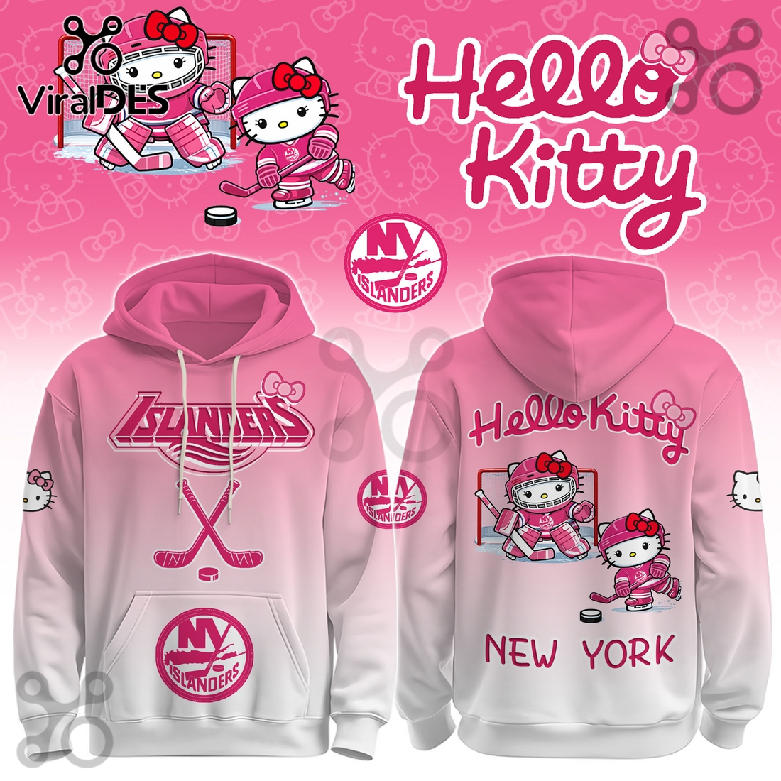The New York Islanders NHL x Hello Kitty Hoodie And Joggers represent a truly unique intersection of sports fandom and pop culture charm, designed for individuals who appreciate both spirited team loyalty and whimsical, iconic aesthetics. This meticulously crafted loungewear set delivers an unparalleled combination of comfort, style, and distinctive brand expression, making it a standout item for a diverse range of customers. At its core, the product masterfully blends the classic, bold identity of the New York Islanders with the universally adored, cute appeal of Hello Kitty. The hoodie typically features the iconic Islanders logo prominently displayed, often on the chest or back, while Hello Kitty is seamlessly integrated into the design, perhaps sporting an Islanders jersey, holding a miniature hockey stick, or playfully interacting with the team’s emblem. This isn’t just a simple overlay; it’s a thoughtful collaboration that sees Hello Kitty adorned in the team’s signature blue, orange, and white color scheme, adding an unexpected layer of adorableness to hardcore fandom. The graphics are designed to be vibrant and durable, ensuring the playful yet proud depiction of your favorite team and character withstands countless washes and wears.