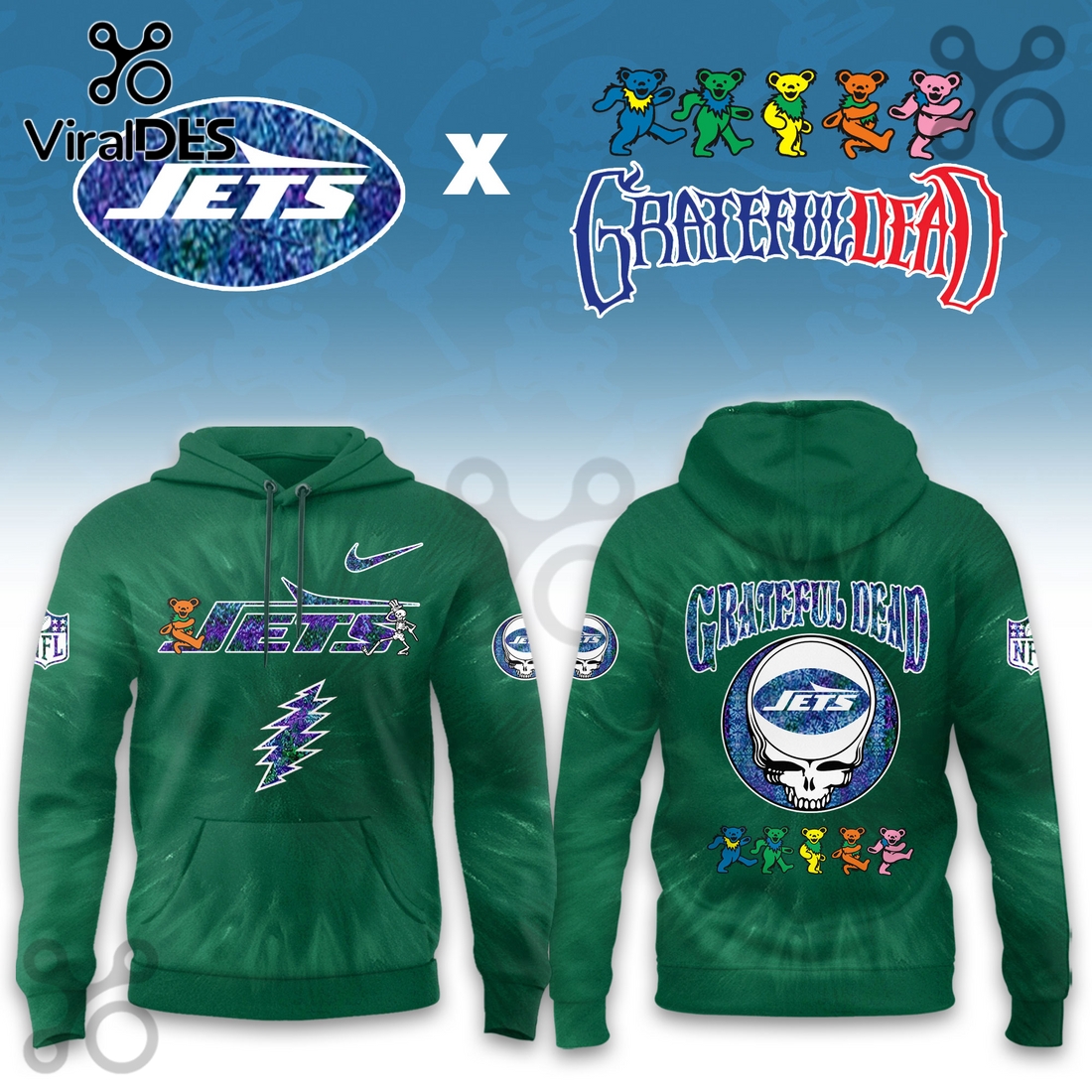What truly elevates this hoodie beyond standard merchandise is its inherent exclusivity and collectibility. Bearing the “Limited Hoodie 2025” designation, each piece is part of a strictly finite production run, making it a rare find destined to become a coveted collector’s item. An individually numbered tag discreetly sewn into the inner collar serves as an authenticating mark, cementing its status as a unique, one-of-a-kind garment from this specific annual release. For the devoted New York Jets fan, this hoodie represents an opportunity to express team loyalty in an extraordinarily distinctive and creative manner, breaking away from conventional jerseys and t-shirts to showcase a deeper, more nuanced personal style. It speaks to the individual who appreciates cultural intersections and desires to stand out from the crowd, allowing them to broadcast their unwavering support for Gang Green while simultaneously celebrating their affinity for legendary music. Conversely, for the fervent Grateful Dead enthusiast, this piece offers a fresh and unexpected avenue to display their allegiance to the band. It’s a sophisticated nod to their musical roots, allowing them to wear their heart on their sleeve in a way that’s both contemporary and timeless, finding common ground with an entirely different cultural phenomenon. For the person who identifies with both worlds – the thunderous roar of a football crowd and the transcendent groove of a live Dead show – this hoodie is nothing short of a personal manifesto, perfectly encapsulating their dual passions in a single, wearable statement. It addresses the need for self-expression, for belonging, and for owning something that genuinely reflects a complex identity. Furthermore, its versatility makes it an indispensable addition to any wardrobe; it’s perfect for layering, durable enough for outdoor activities, and stylish enough for casual outings. This hoodie isn’t just clothing; it’s a conversation starter, a bold declaration of unique tastes, and a timeless artifact that bridges two vibrant cultural landscapes, making it an invaluable acquisition for any discerning fan or collector seeking a truly exceptional piece.