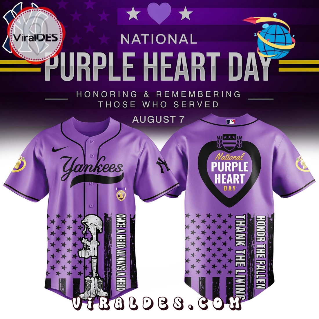 New York Yankees MLB x Purple Heart Day Baseball Jersey Information: