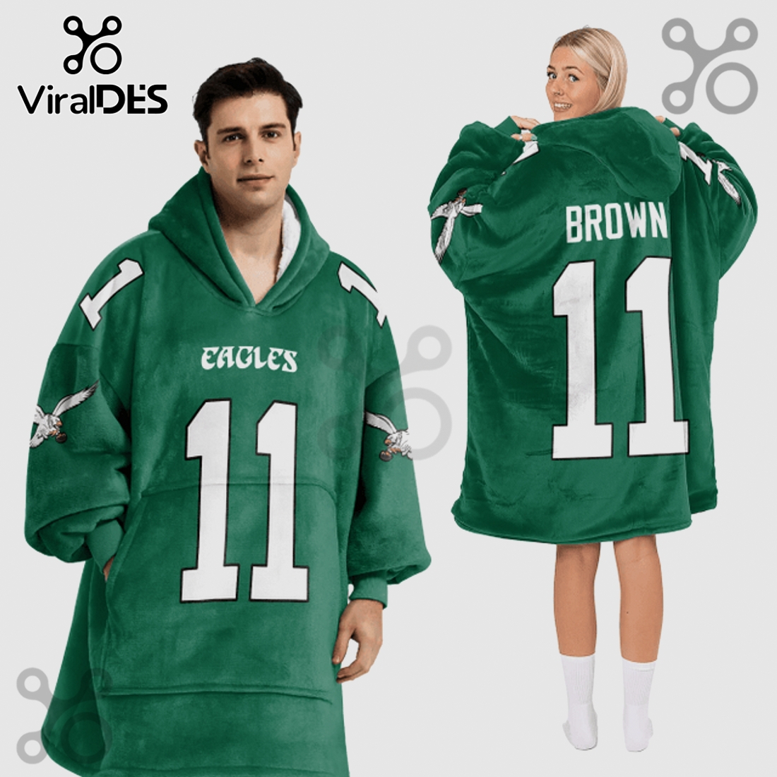 Philadelphia Eagles A.J. Brown 11 NFL Football Oversized Blanket Hoodie