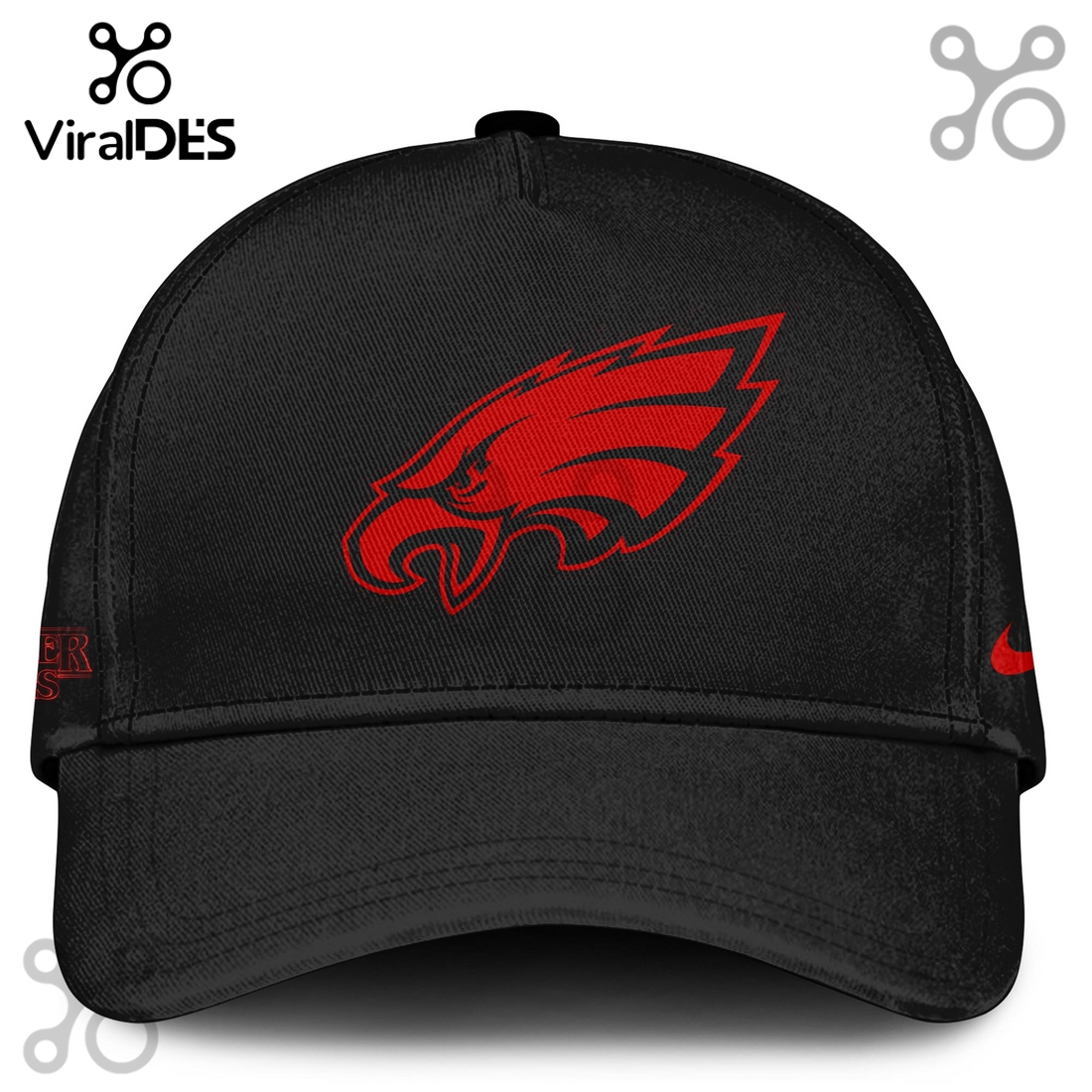 Complementing the hoodie are the matching pants, engineered with the same high-quality fleece blend for consistent comfort from head to toe. These pants are designed in a modern jogger style, offering a relaxed yet tapered fit that is both stylish and incredibly comfortable. An elastic waistband, often accompanied by an external drawstring, ensures a customizable and secure fit, accommodating a range of body types and preferences. Side seam pockets provide essential utility for carrying small essentials like keys, a phone, or wallet, blending practicality with a sleek profile. The design integration extends to the pants as well, featuring subtle Eagles branding or a smaller, complementary Stranger Things-inspired graphic on the thigh or leg, continuing the harmonious mashup without overwhelming the overall aesthetic. Ribbed ankle cuffs cinch gently around the ankles, reinforcing the jogger silhouette and preventing the legs from riding up, making them ideal for both active and relaxed environments. This full set isn’t merely about sporting logos; it’s about embodying a narrative where the passion of NFL fandom meets the thrilling mystery of a beloved sci-fi series. It caters to the discerning fan who appreciates unique, officially licensed merchandise that tells a story and sparks conversation. The rigorous quality standards associated with official NFL and Stranger Things licensing ensure that buyers receive a product that is not only visually striking but also built to last, providing an authentic and premium experience. Whether attending a watch party, heading out for a casual meet-up, or simply unwinding, this hoodie and pants combo offers unparalleled comfort, distinctive style, and a powerful statement of dual allegiance, fulfilling the need for both personal expression and practical, high-quality leisurewear.