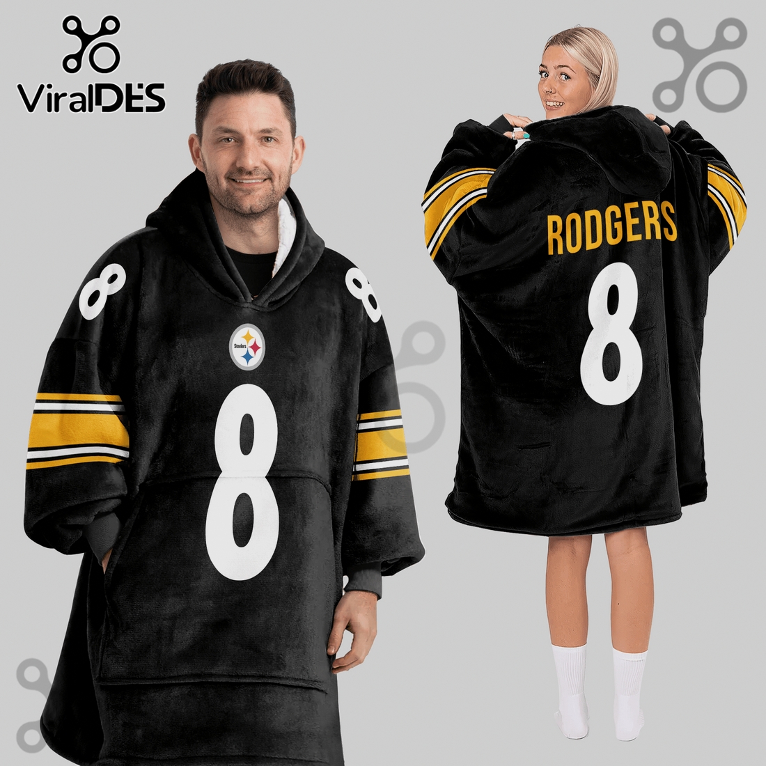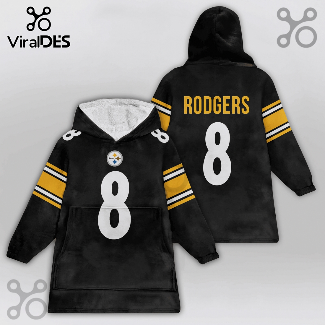 What truly elevates this product beyond a mere comfort item is its authentic tribute to the Pittsburgh Steelers. Boldly emblazoned with the iconic team logo and vibrant colors of black and gold, it instantly identifies the wearer as a proud member of the Steelers nation. The inclusion of “Rodgers 8” specifically references a beloved player, adding a personalized touch that deepens the connection for fans who cherish specific moments or eras in the team’s history. This isn’t just a blanket; it’s a wearable piece of team spirit, perfect for game days spent lounging on the couch, tailgating before kickoff, or simply showcasing your allegiance around the house. The official NFL licensing guarantees authenticity, ensuring high-quality graphics and materials that reflect genuine team pride.