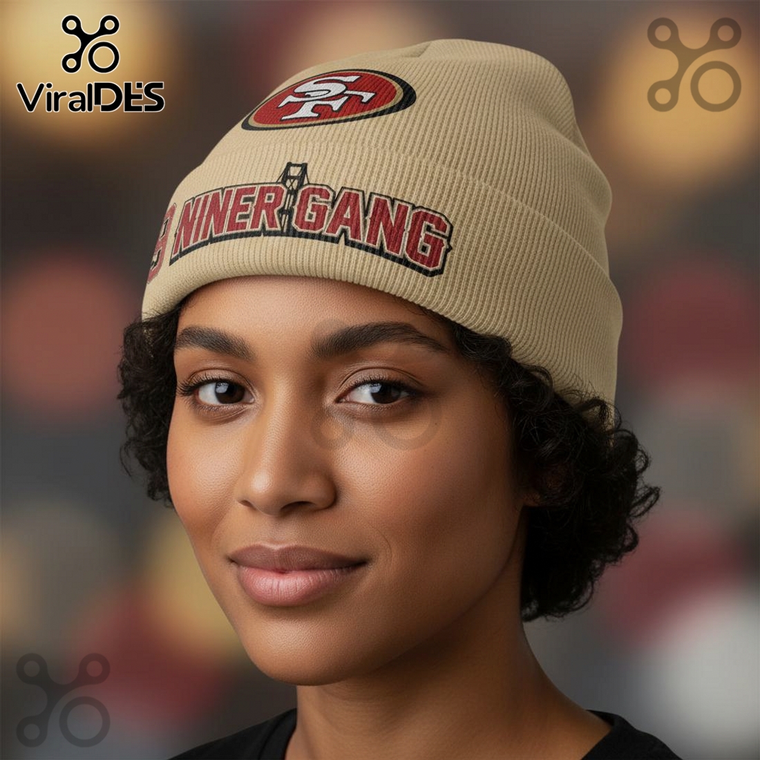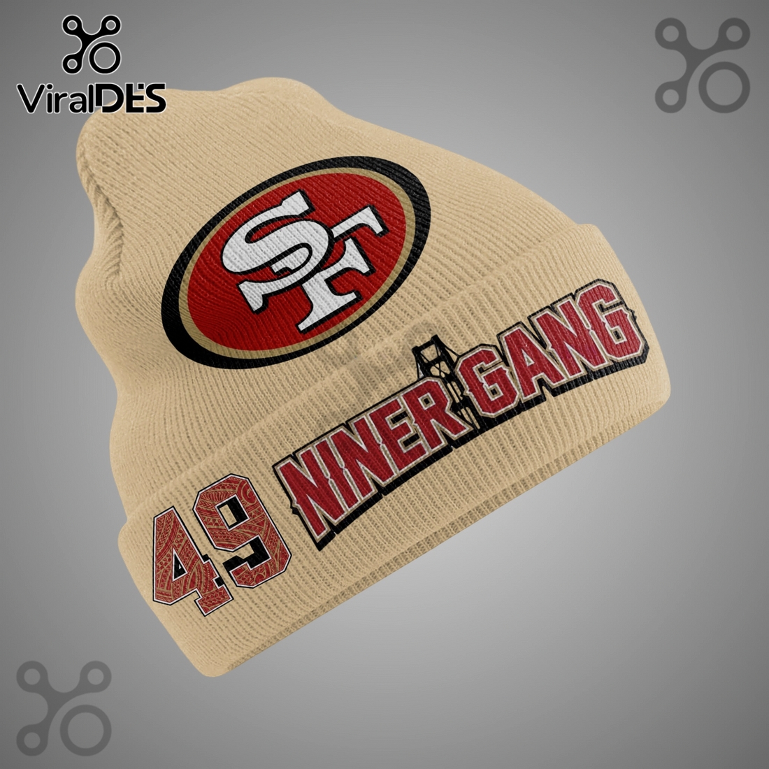 Visually, the beanie immediately declares allegiance with its iconic San Francisco 49ers team colors – predominantly a vibrant red, accented with gold, black, and white elements. The front prominently features the powerful “Niner Gang” text, expertly embroidered with dense, durable stitching that resists fraying and fading, ensuring the message remains bold and clear season after season. Below this declaration of camaraderie, the classic San Francisco 49ers oval logo, with its distinctive “SF” design, is meticulously rendered, adding an authentic touch of team heritage. The quality of the embroidery is a standout feature; the threads are rich in color and tightly packed, creating a premium, textured finish that elevates the overall aesthetic beyond standard screen-printed merchandise. This attention to detail in the visual branding ensures that the hat not only looks great but also maintains its sharp appearance through countless wears and washes.
