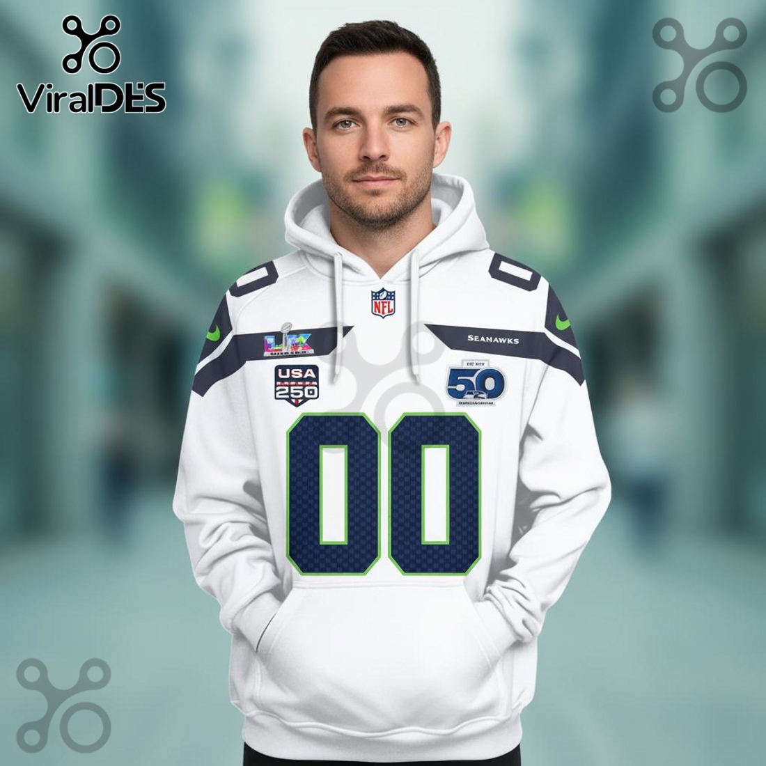 This Seattle Seahawks Personalized 50th Anniversary 3D Graphic Hoodie stands out as an exceptional piece of fan apparel, meticulously designed for those who bleed blue and green and wish to commemorate a significant milestone in their team’s history. Itβs far more than just a typical garment; it embodies loyalty, personal connection, and a striking visual aesthetic that sets it apart from conventional fan gear. The most striking feature is undoubtedly the advanced 3D graphic design that adorns the fabric, creating an immersive, multi-dimensional visual experience. This isn’t a flat, screen-printed logo; instead, the visuals appear to pop off the hoodie, giving depth and realism to iconic Seahawks imagery. Imagine dynamic renditions of the team’s fierce hawk logo, perhaps interwoven with elements celebrating fifty years of gridiron glory β potentially showcasing historical moments, championship dates, or a montage of beloved players in a way that truly jumps out. The vibrant team colors β the deep action green, the rich college navy, and subtle white or silver accents β are rendered with exceptional clarity and saturation, ensuring they remain true to the Seahawks’ identity and catch the eye from any distance. This 50th-anniversary theme is intricately woven into the design, serving as a constant reminder of half a century of thrilling plays, unwavering spirit, and a passionate fan base. It transforms the hoodie into a wearable tribute, a piece of living history that connects the wearer directly to the team’s storied past and enduring legacy, making it an instant heirloom for dedicated supporters.