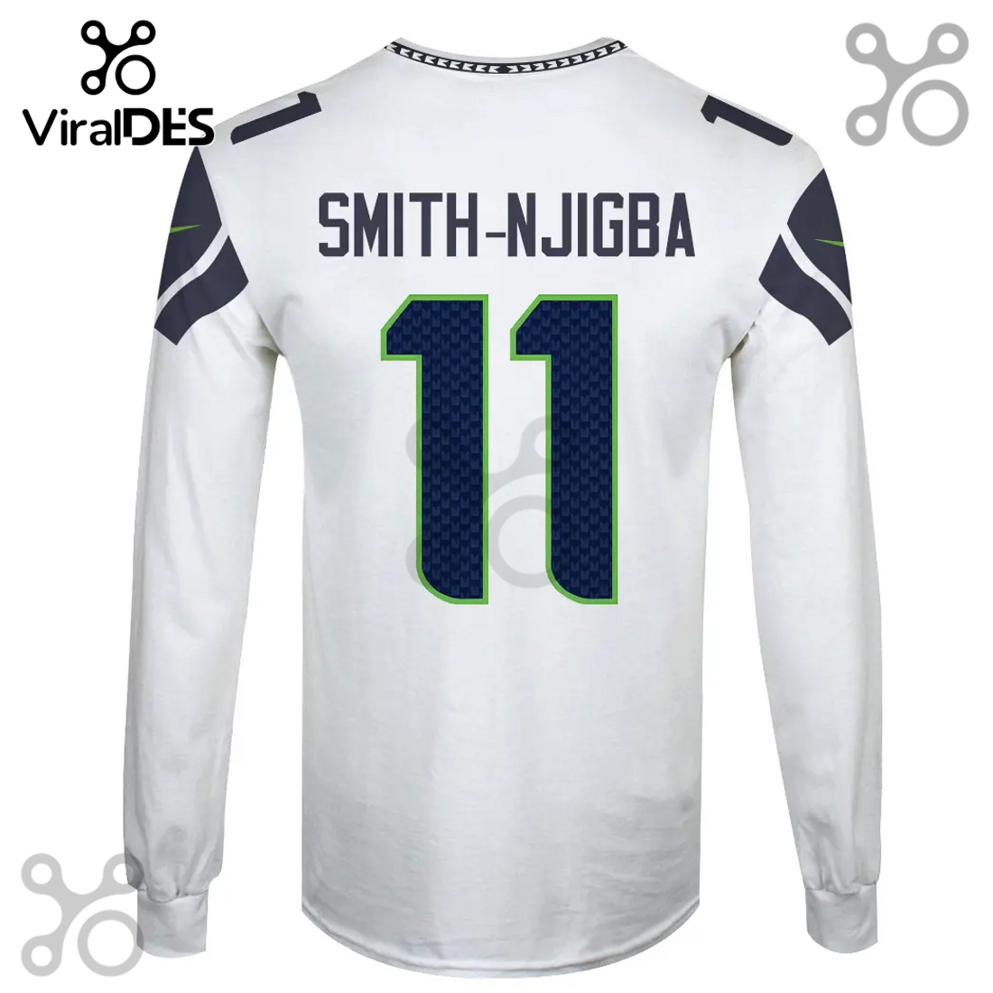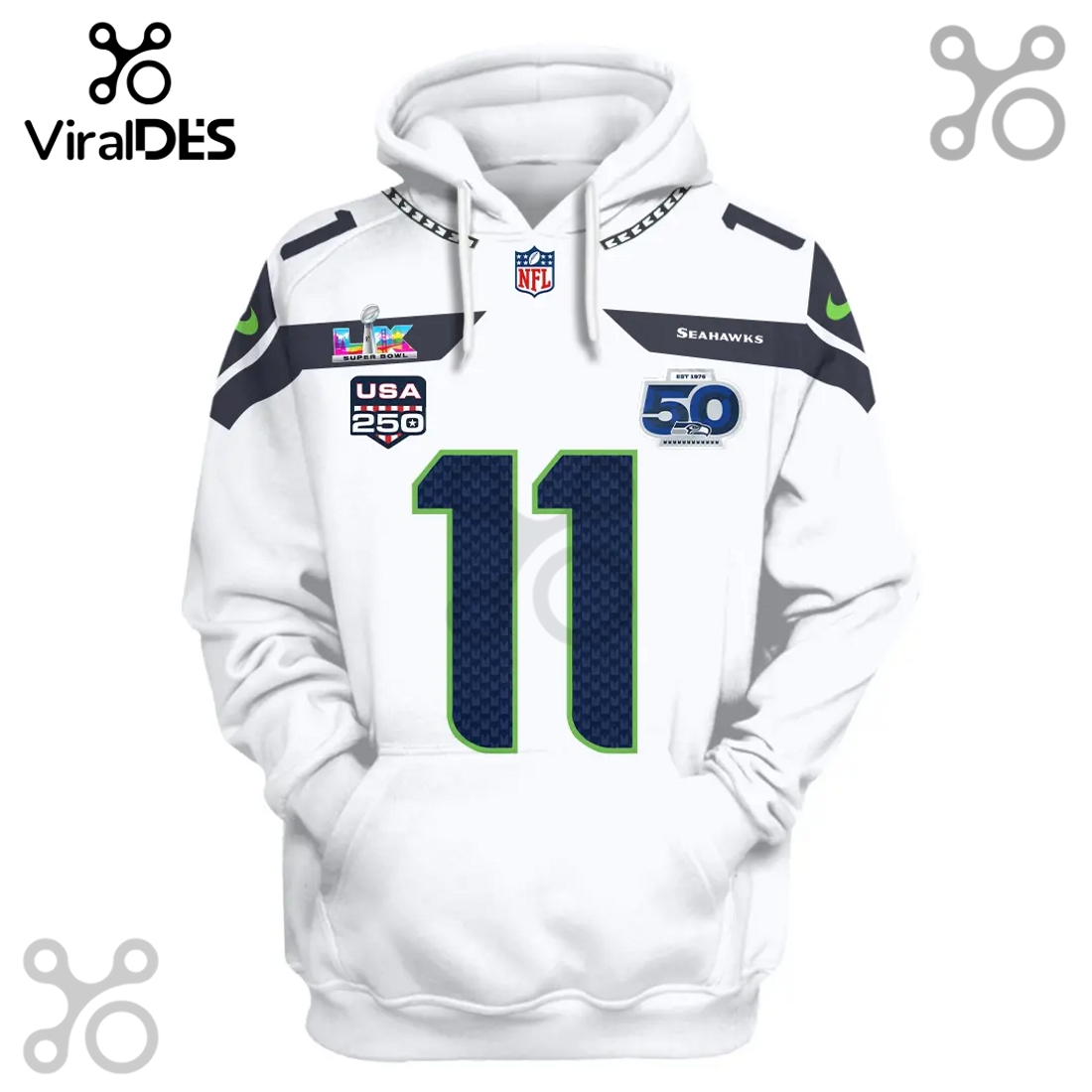 This distinctive Seattle Seahawks Smith-Njigba 11 Super Bowl LVIII 58th Anniversary 3D Pullover Hoodie offers an unparalleled way for fans to showcase their unwavering team loyalty and personal admiration for one of the franchise’s dynamic stars, Jaxon Smith-Njigba. It serves as far more than just casual apparel; it’s a vibrant, wearable testament to a specific moment in NFL history, meticulously designed for the dedicated supporter who values both style and substance. The visual centerpiece of this garment is its groundbreaking 3D sublimated print, which elevates the design beyond conventional screen printing by creating an illusion of depth and texture that truly brings the graphics to life. Imagine the iconic Seattle Seahawks logo, rendered with a striking three-dimensional effect, appearing to jump off the fabric in its authentic College Navy, Action Green, and Wolf Grey hues. This advanced printing technique ensures that the intricate details of the team’s emblem, Smith-Njigba’s name, and his prominent number 11 are not only incredibly sharp and vivid but also resistant to fading, cracking, or peeling, guaranteeing that the hoodie retains its eye-catching appeal through countless washes and wears.