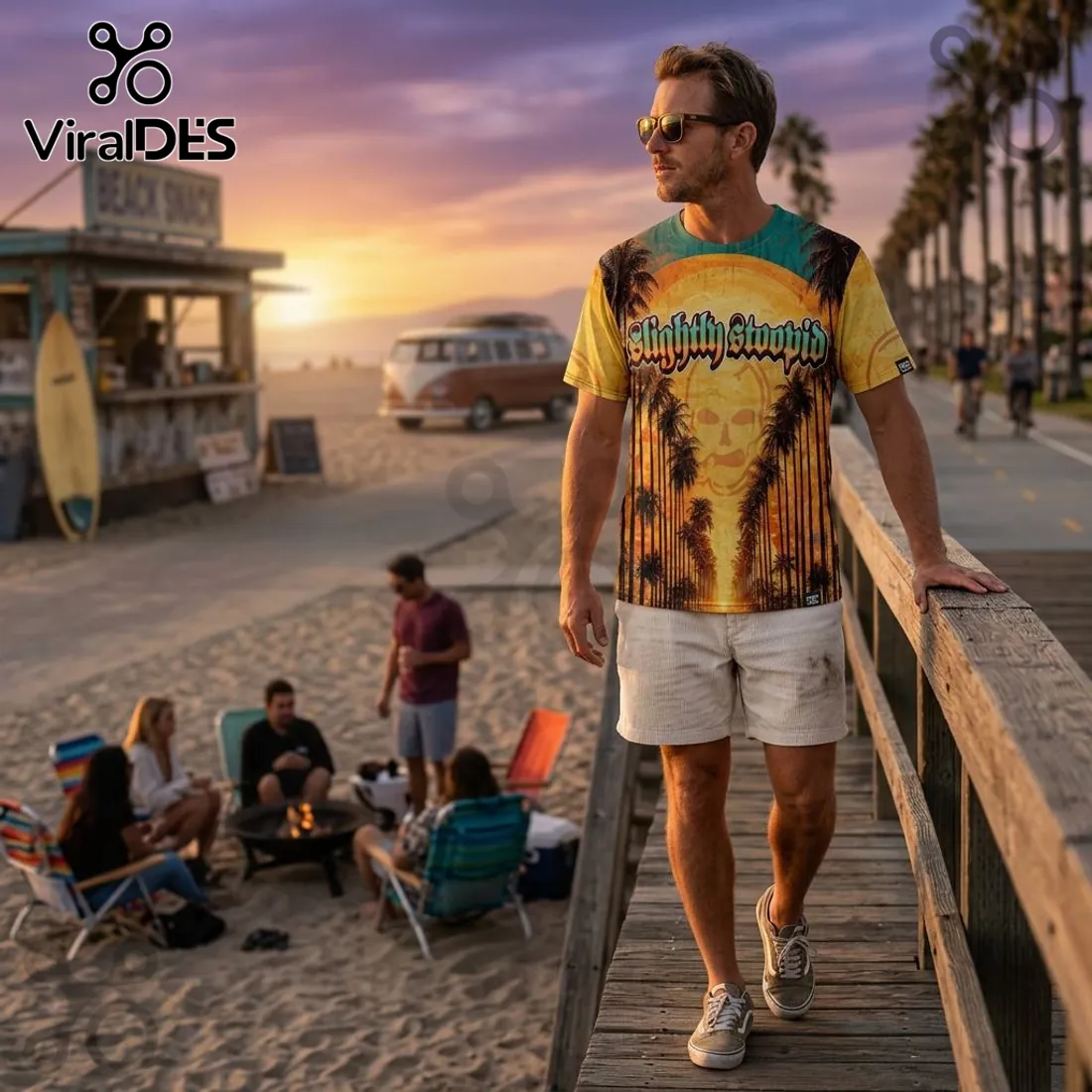 Slightly Stoopid Summer Tour Skull Palm Tree Graphic 3D T-Shirt
