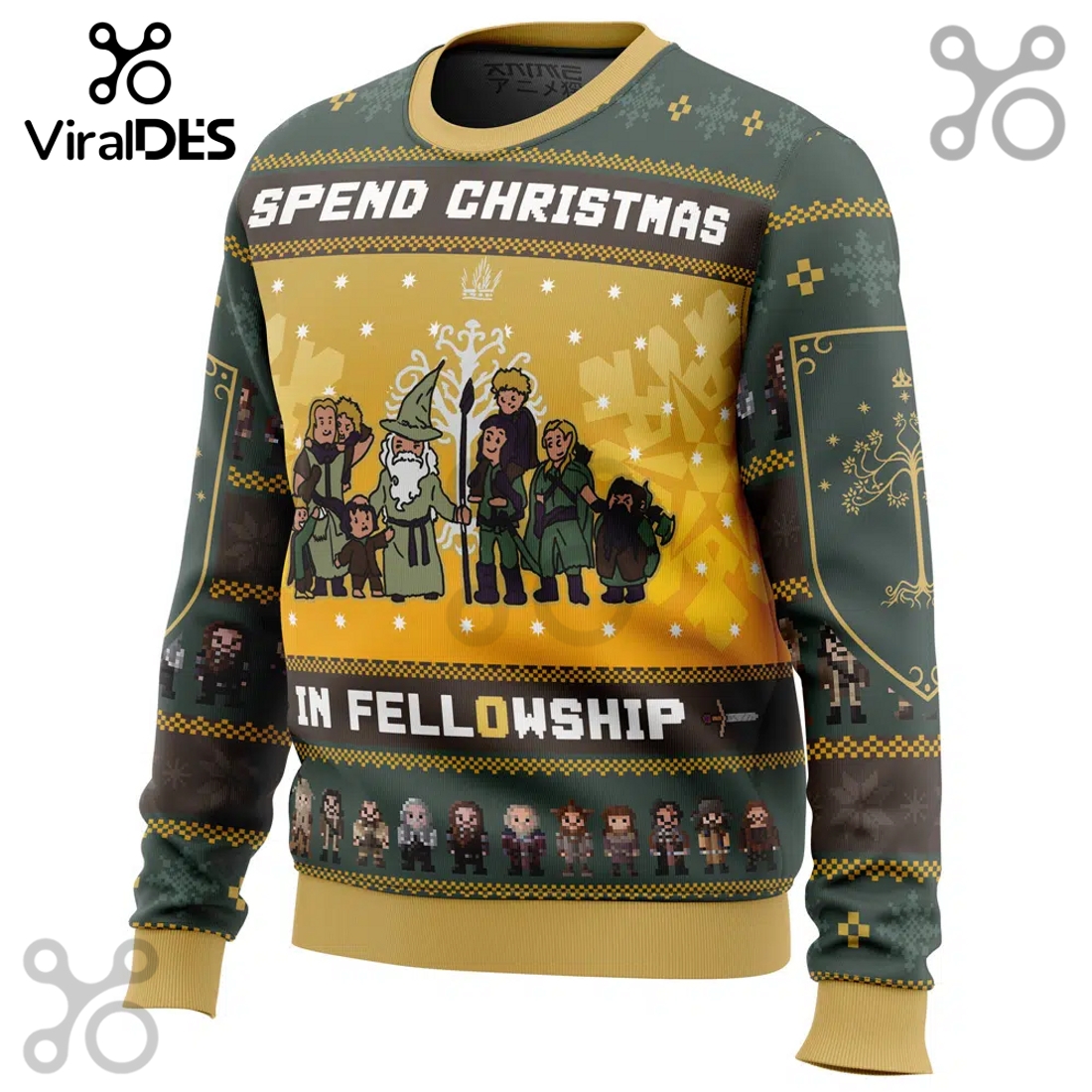 The highly anticipated ‘Spend Christmas in Fellowship The Lord of the Rings Ugly Sweater 2025’ offers devoted fans an unparalleled opportunity to blend their love for Middle-earth with the festive spirit of the holiday season. This uniquely designed garment transcends typical holiday attire, presenting an intricate tapestry of iconic imagery from J.R.R. Tolkien’s beloved saga, meticulously interwoven with classic Christmas motifs to create a truly memorable and conversation-starting piece. The sweater masterfully balances the whimsical “ugly sweater” aesthetic with a profound respect for the source material, ensuring every detail resonates with a fan’s deep appreciation for the lore. Its design showcases scenes where the serene beauty of the Shire, with its cozy hobbit holes and snow-dusted hills, meets the twinkling lights of a festive Christmas tree. Key characters such as Frodo, Sam, and Gandalf are depicted on a snowy quest or gathered in camaraderie, often sporting playful Santa hats or surrounded by holly and snowflakes. Even elements like the Eye of Sauron are cleverly re-imagined as a mischievous, glowing ornament atop a jagged, festive peak, adding a humorous, self-aware twist. Elven script elegantly forms seasonal greetings, woven into patterns that include candy canes, miniature One Rings, and winter flora inspired by Lothlórien or Rivendell. The color palette embraces traditional Christmas reds, greens, and golds, enriched by the earthy browns, forest greens, and deep blues characteristic of Middle-earth, creating a visually rich and distinctive appearance. The “2025” designation is subtly integrated, perhaps within a festive banner, marking it as a special edition for the current year.