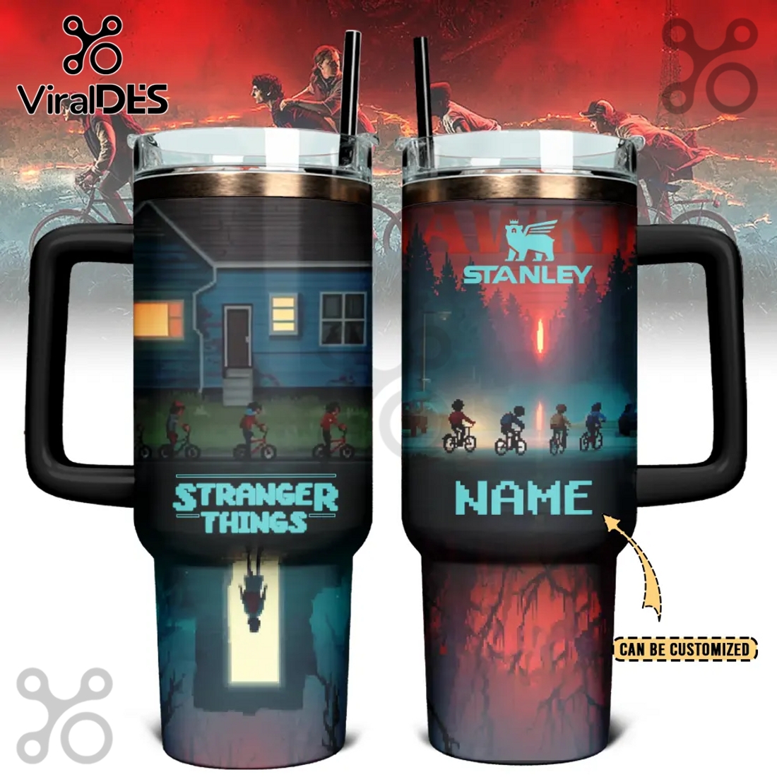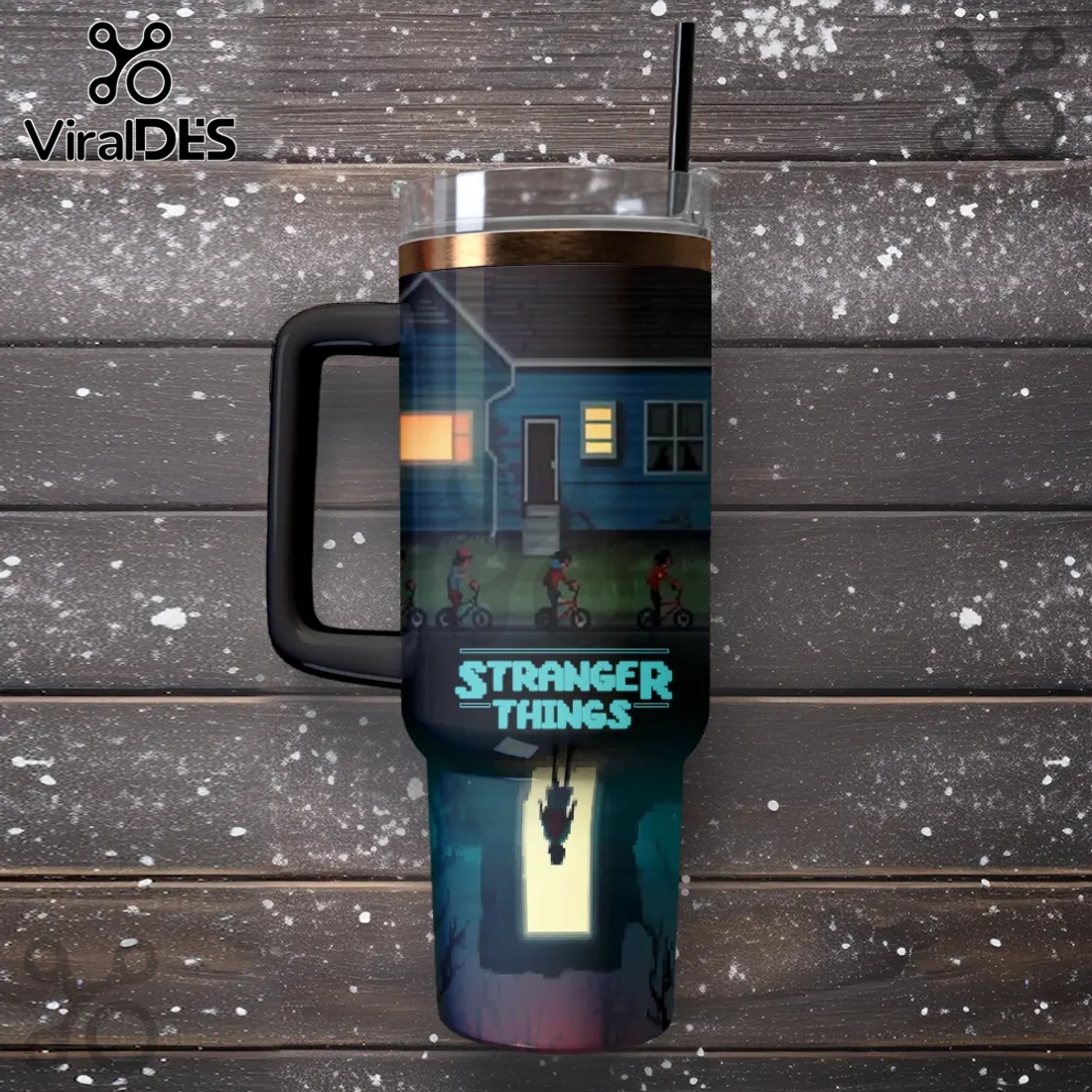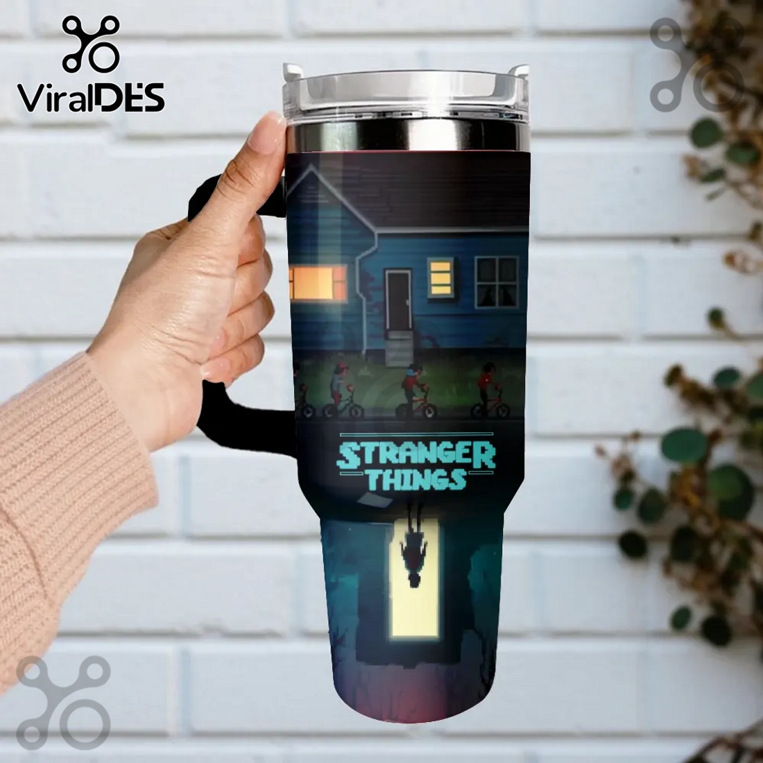 Stranger Things Custom 40oz Stainless Steel Tumbler With Handle – Insulated Tumbler With Handle