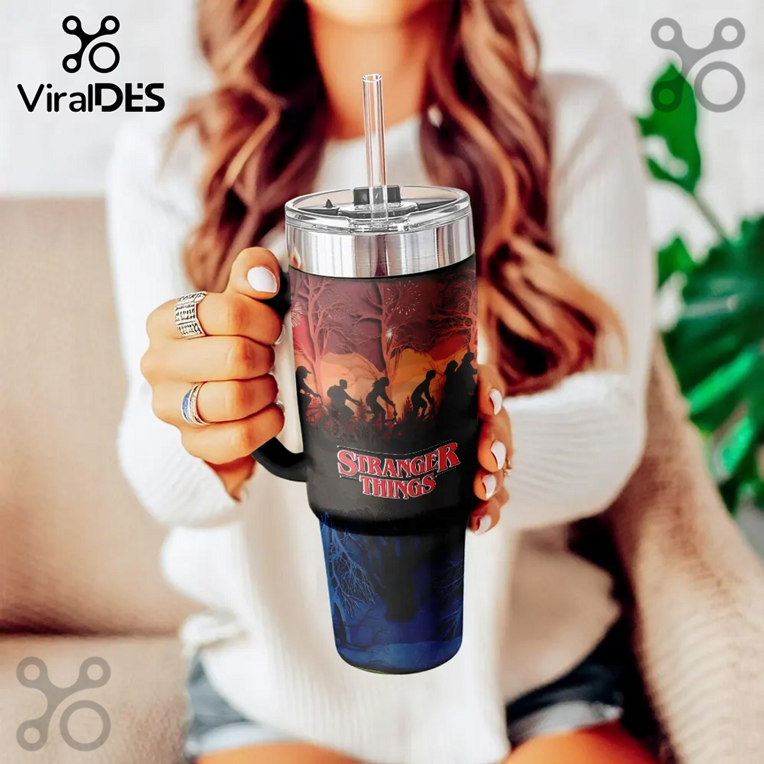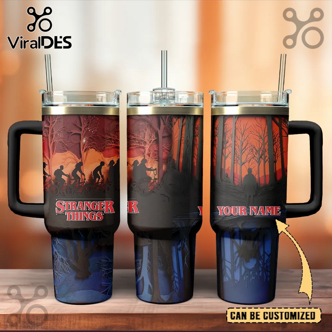 Stranger Things Custom Stanley 40oz Tumbler – Insulated Tumbler With Handle