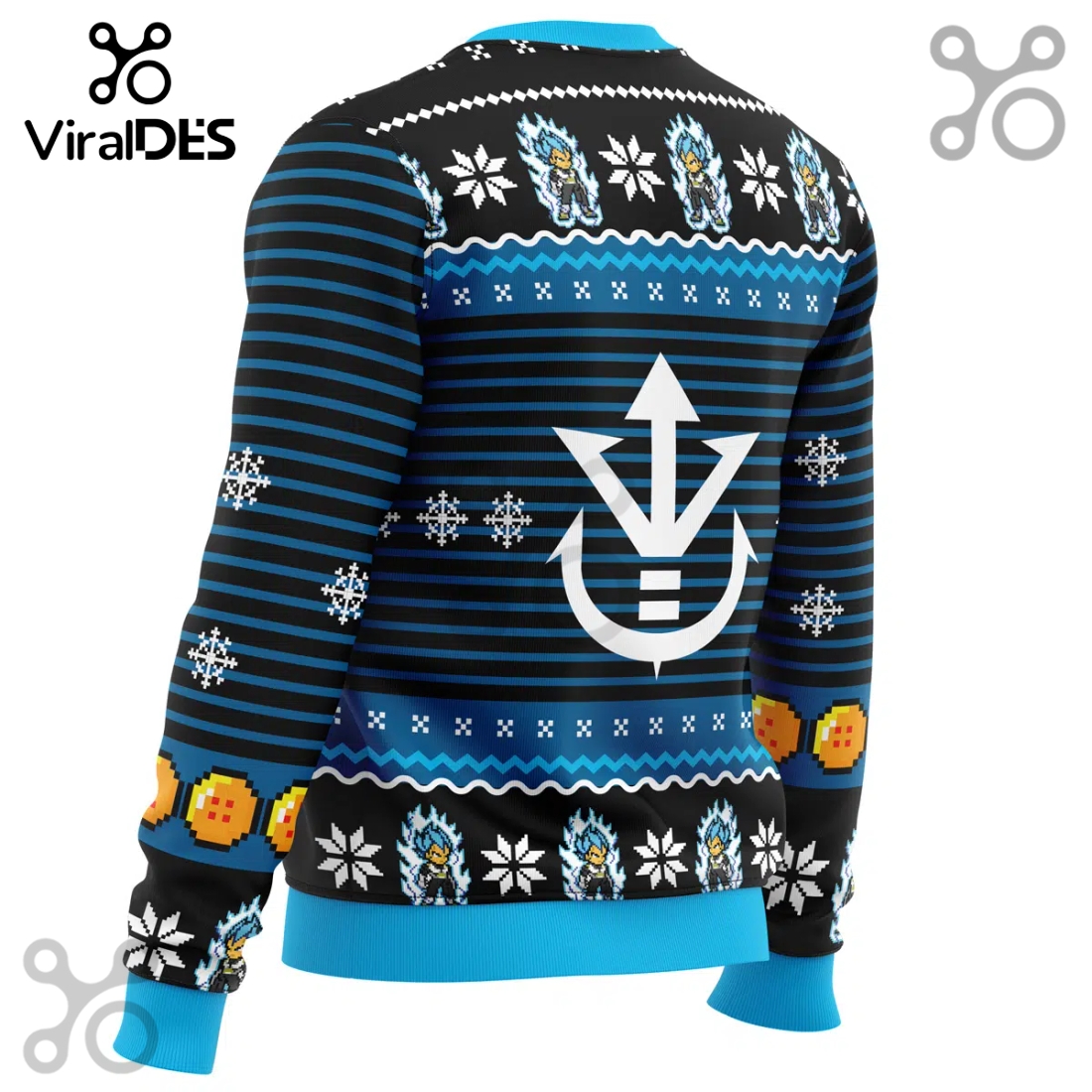 The Super Saiyan Blue Vegeta Ugly Sweater 2025 stands as a quintessential declaration for any dedicated Dragon Ball enthusiast aiming to inject a potent dose of Saiyan pride into their holiday celebrations. This meticulously designed garment transcends the typical festive attire, seamlessly merging the iconic, battle-hardened prince of all Saiyans with the beloved, often hilariously clashing aesthetic of a traditional “ugly sweater.” At its heart, the sweater features a commanding, central portrayal of Super Saiyan Blue Vegeta, rendered in a bold, vibrant jacquard knit that captures his intense aura and signature spiky blue hair with surprising fidelity, despite the deliberately exaggerated, pixelated charm inherent to the ugly sweater genre. His iconic scowl, a testament to his unwavering determination, is unmistakable, ensuring that even in a sea of generic holiday patterns, Vegeta’s indomitable spirit shines through.