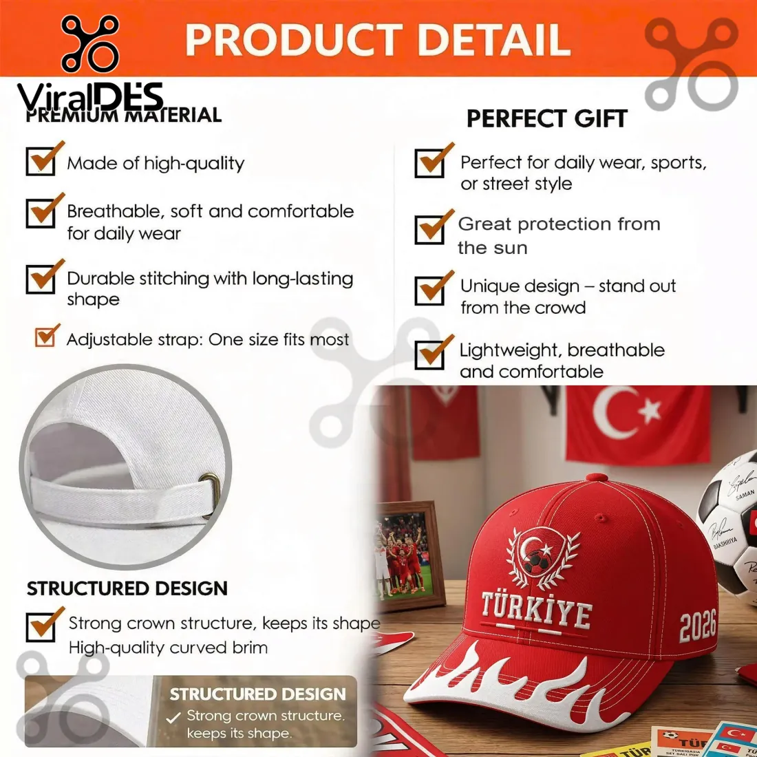 Turkey Football Fan 2026 Commemorative Embroidered Flame Design Baseball Cap size chart and fit guide