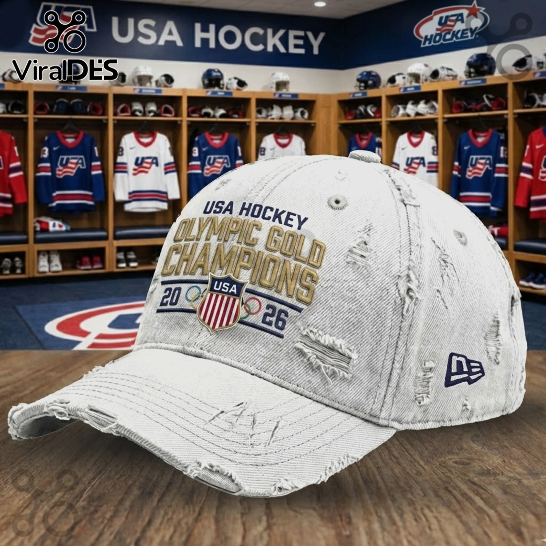 USA Hockey Olympic Gold Champions 2026 Distressed Adjustable Hat