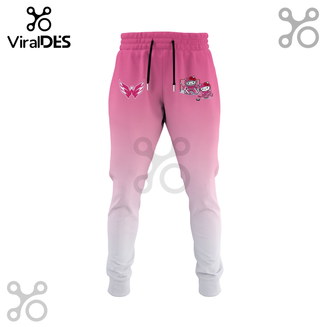 Complementing the hoodie are the equally comfortable and stylish joggers, completing the cohesive athleisure look. These pants mirror the hoodie’s premium fabric composition, delivering the same luxurious softness and warmth. The design often incorporates a smaller, repeated Hello Kitty and Capitals motif, or a single, tastefully placed emblem near the hip, maintaining a sophisticated balance between fandom and fashion. A crucial feature is the elastic waistband, usually accompanied by an adjustable drawstring, allowing for a personalized and secure fit, accommodating various body types with ease. The tapered leg design is both modern and practical, providing a sleek silhouette without restricting movement, culminating in ribbed ankle cuffs that prevent the pants from riding up and help retain warmth. Functional side pockets are typically included, offering convenient storage for small items. The color palette of the set generally adheres to the Capitals’ primary hues – vibrant reds, deep blues, or a neutral base like charcoal gray or black, allowing the character and team logos to pop dynamically. This integrated design ensures that whether worn together as a complete outfit or as separates, each piece stands out while perfectly aligning with the other.