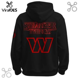 The hoodie itself is a masterclass in crossover design, prominently featuring the Washington Commanders’ official insignia reimagined with a subtle – Stranger Things- -esque distressed texture or font, perhaps incorporating visual cues from the Upside Down or the seriesβ iconic title typography. Its generous fit ensures maximum comfort and ease of movement, while the adjustable drawstring hood provides extra protection against the elements or simply offers a cozy retreat. A spacious kangaroo pocket graces the front, perfect for warming hands or securely stashing essentials like a phone, wallet, or remote control. Ribbed cuffs and hemline ensure a snug, comfortable fit that retains its shape even after multiple washes, emphasizing the garment’s durability and long-term appeal.