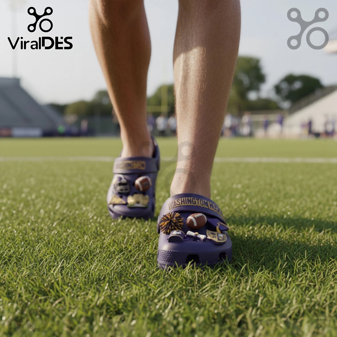 The ultimate expression of Washington Huskies pride meets legendary comfort in these specially designed Crocs Clogs, complete with an array of vibrant, team-themed charms, making them a must-have for any dedicated fan considering unique and practical footwear. This distinctive product marries the universally recognized design and unparalleled comfort of classic Crocs with the unmistakable spirit of the University of Washington Huskies, allowing wearers to showcase their allegiance from head to toe. Constructed from Crocs’ proprietary Crosliteβ„’ foam material, these clogs deliver the signature lightweight cushioning and ergonomic support that has made the brand a global phenomenon, ensuring all-day comfort whether you’re tailgating before a game, walking across campus, or simply running errands. The iconic silhouette features ample ventilation ports, which not only contribute to breathability but also serve as the perfect attachment points for the included Jibbitzβ„’ charms, allowing for personalized display of team loyalty. The clogs themselves typically come in a bold, rich purple, often accented with gold details that immediately evoke the Huskies’ official colors, possibly featuring a subtle, embossed “W” logo or team graphic directly on the shoe’s upper or footbed, cementing its fan appeal beyond the detachable charms.